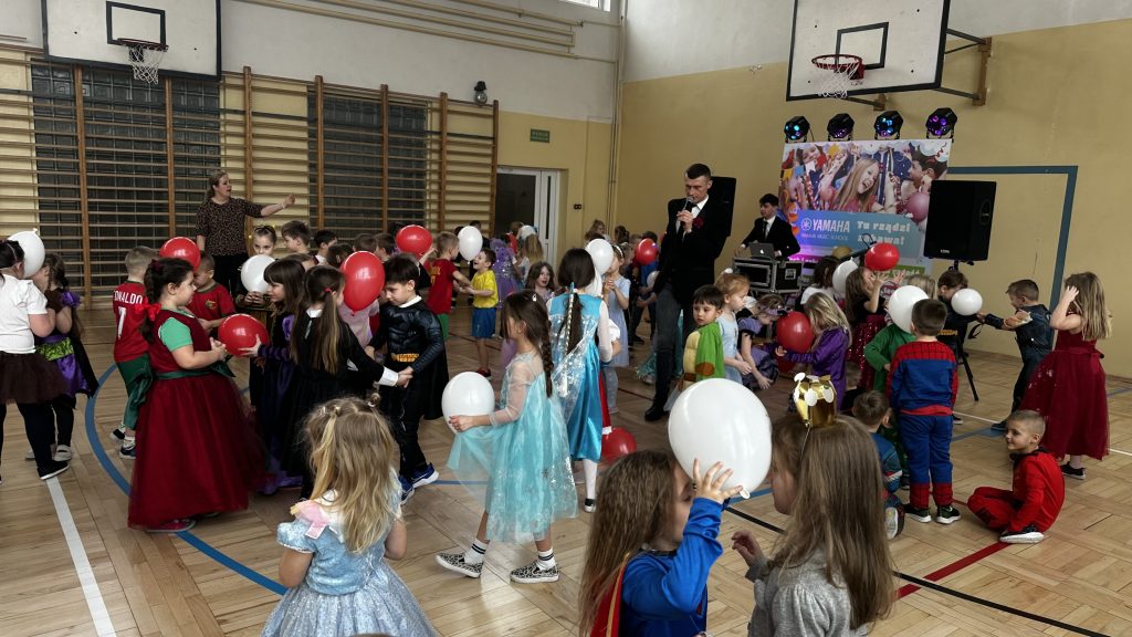 Kolorowa sala, piękne stroje oraz wspaniała atmosfera sprawiły, że przedszkolaki z entuzjazmem bawiły się przy muzyce. Bal poprowadzili animatorzy ze Szkoły Muzycznej Yamaha w Rzeszowie, którzy zadbali o ciekawy program, pełen zabaw, tańców i muzycznych atrakcji.