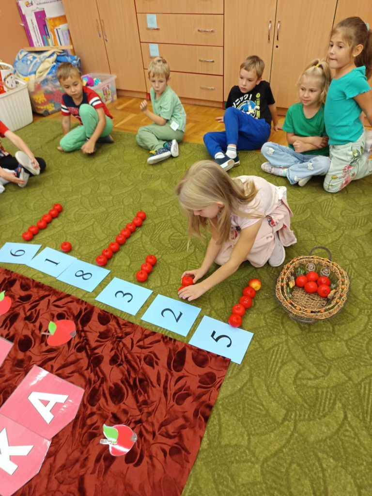 29 września świętowaliśmy w grupie Żabki Dzień Jabłka. Dzieci dowiedziały się że jabłka to prawdziwa skarbnica witamin i że można z nich przygotować wiele pysznych i zdrowych przetworów – od kompotów i soków aż po pyszne szarlotki i musy.