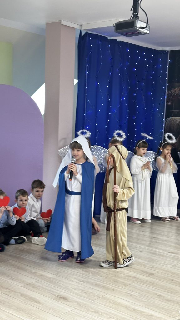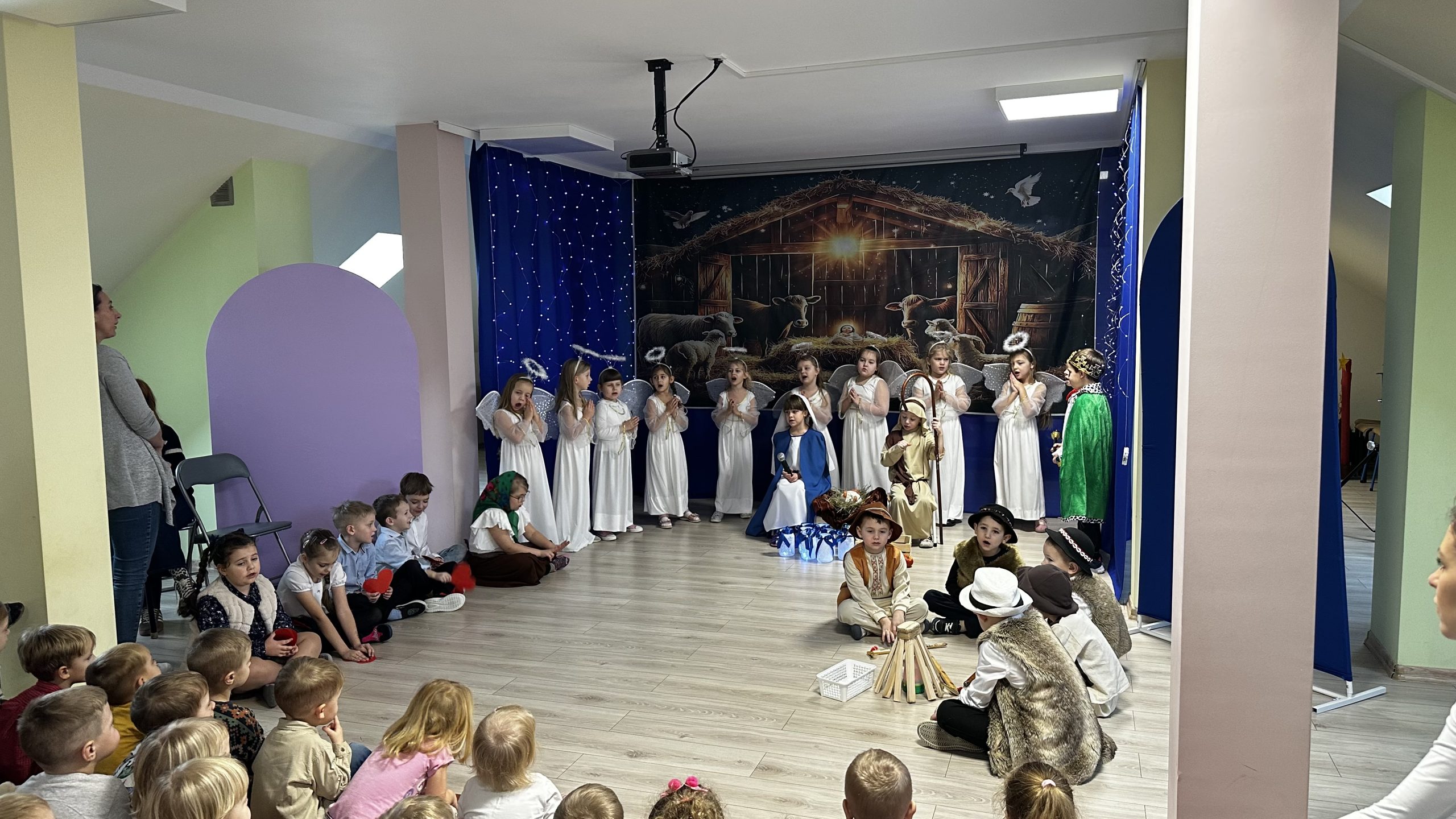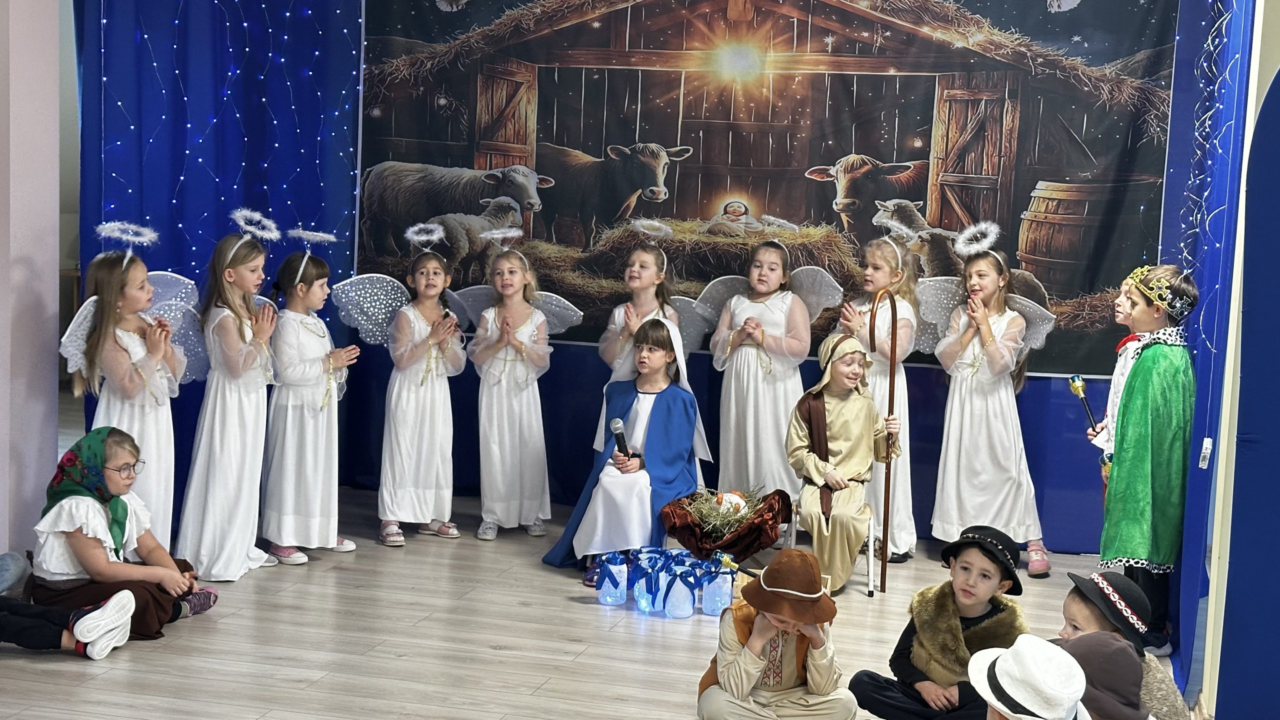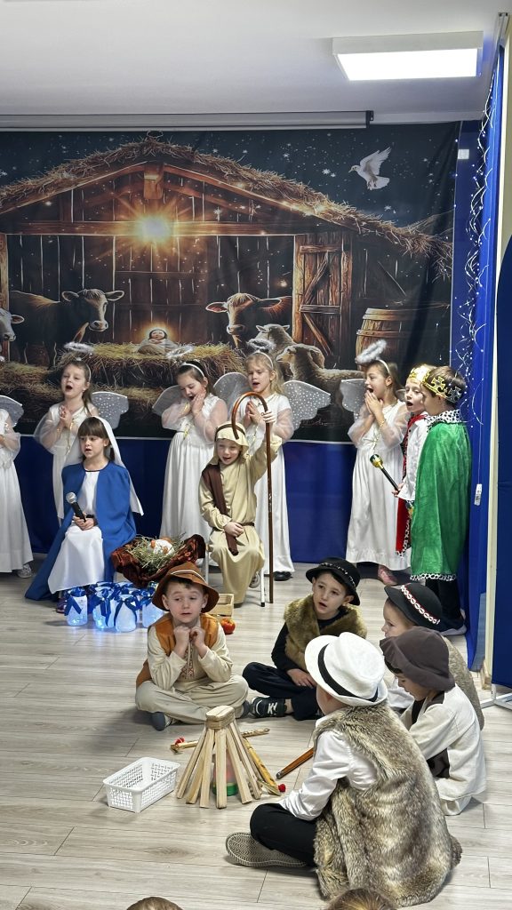 17.12. najstarsza grupa „Żabki” wraz z wychowawcą mgr Agnieszką Łabaj zaprosiła wszystkie dzieci i pracowników przedszkola na jasełkowe przedstawienie. Piękne przedstawienie wprowadziło wszystkich zgromadzonych w świąteczny nastrój. Mali artyści z dużym przejęciem i zaangażowaniem wiernie odtwarzali wyznaczone im role. Nie zabrakło również kolęd, w śpiew których zaangażowali się wszyscy widzowie.