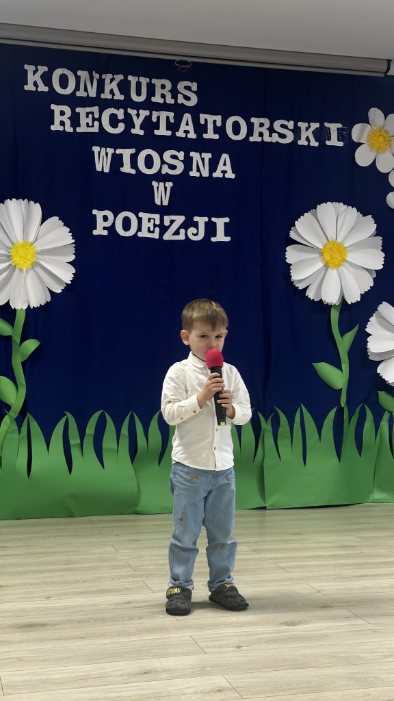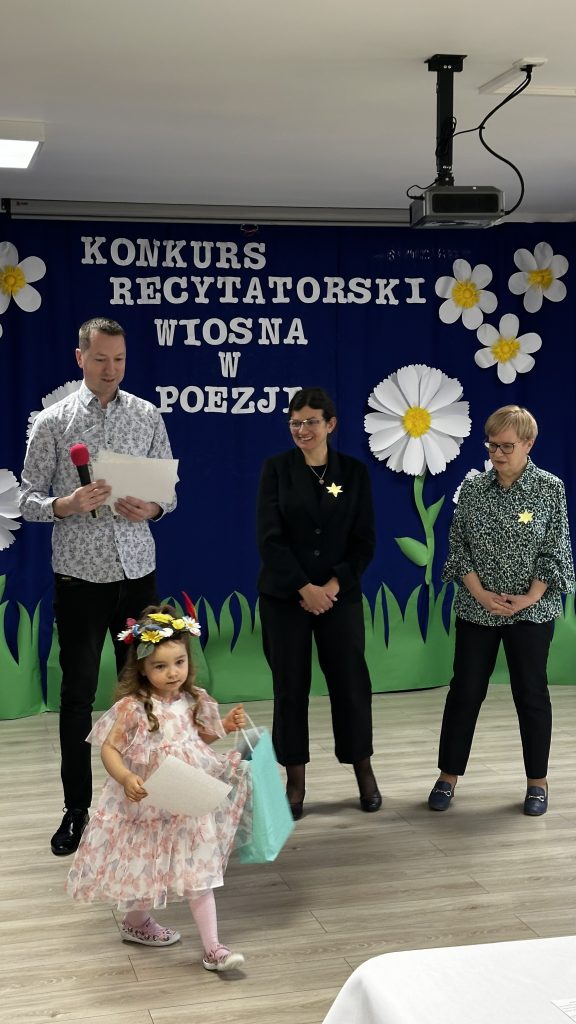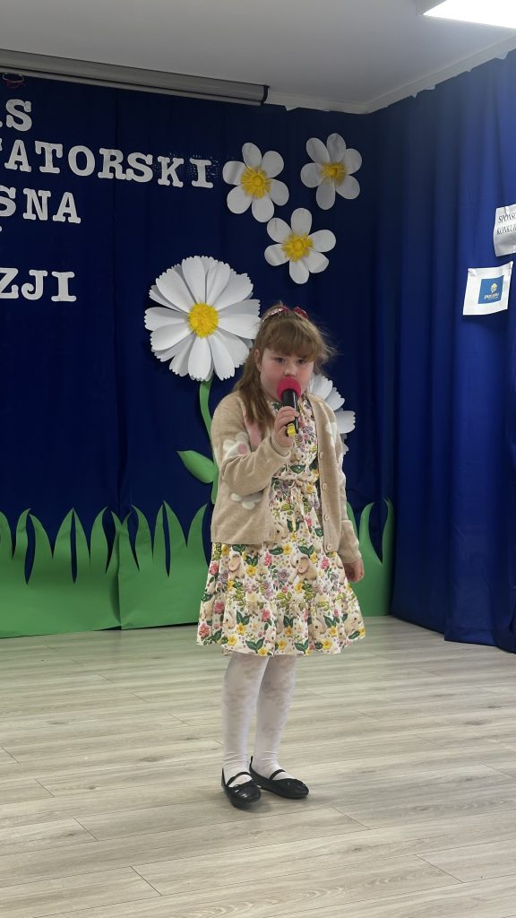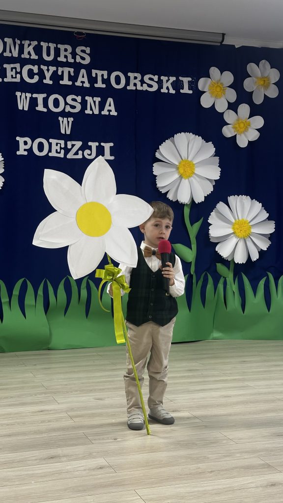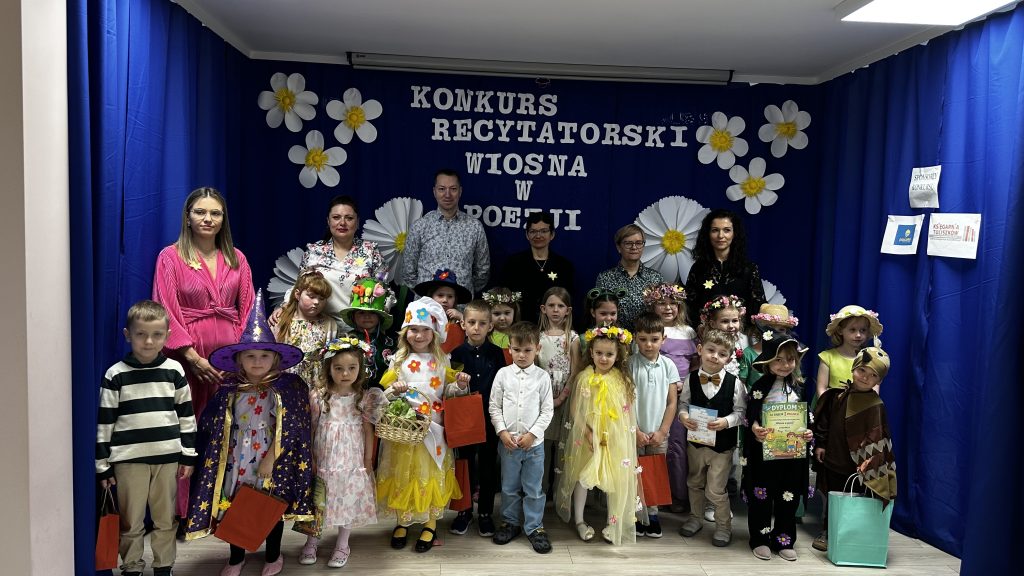 Dnia 17 kwietnia w naszym przedszkolu odbył się Konkurs Recytatorski pt. „Wiosna w poezji”. Wzięło w nim udział 21 małych miłośników poezji z wszystkich grup wiekowych. Mali artyści z dużym zaangażowaniem prezentowali wiersze o tematyce wiosennej, dbając o wyrazistą mowę i odpowiednią interpretację.