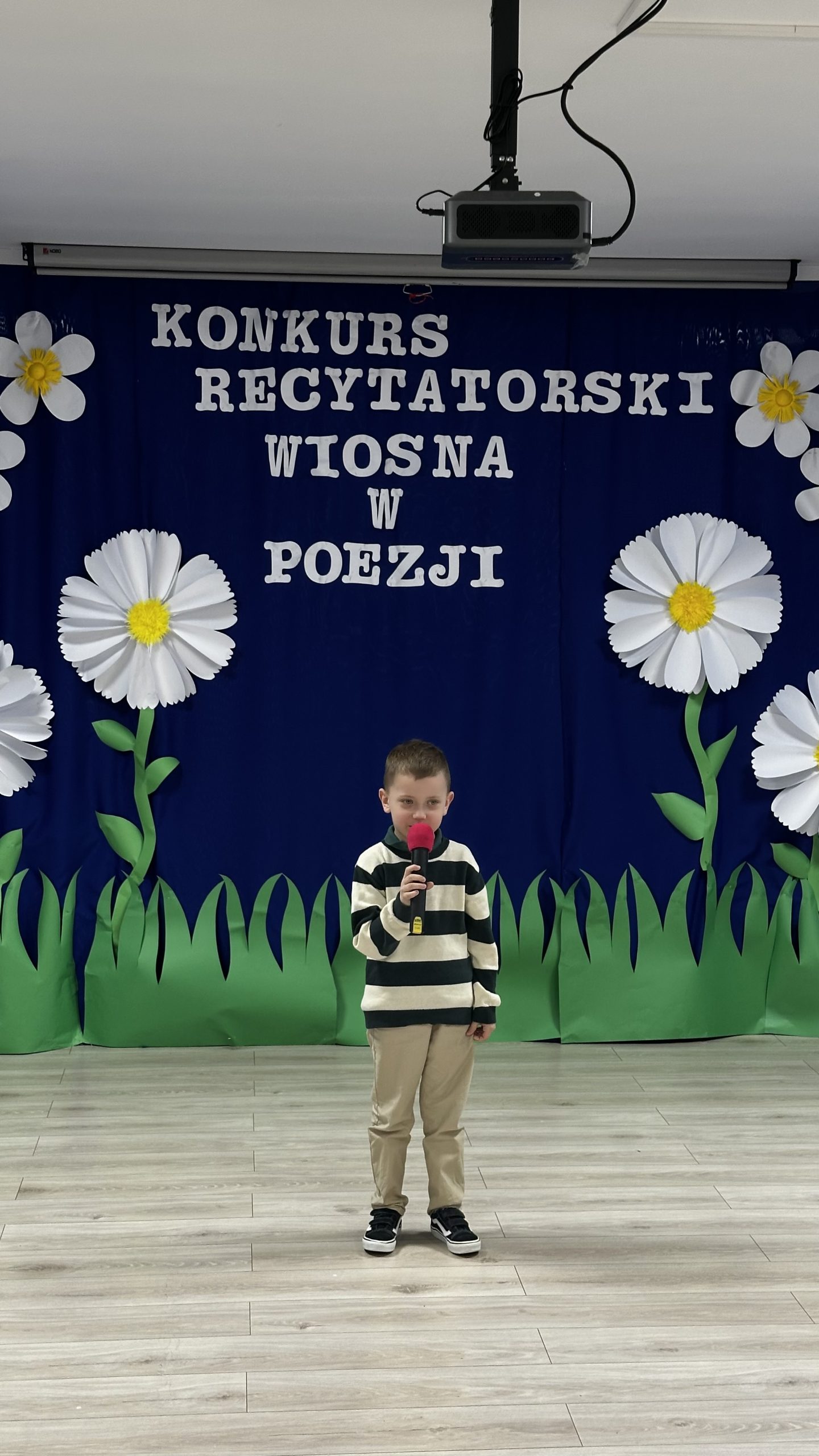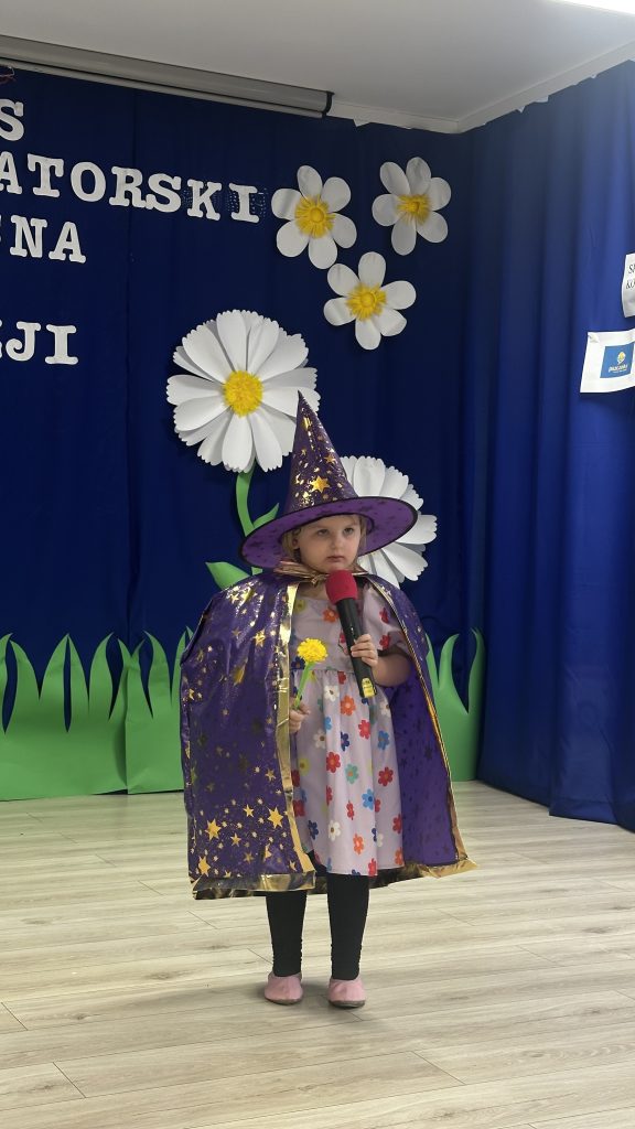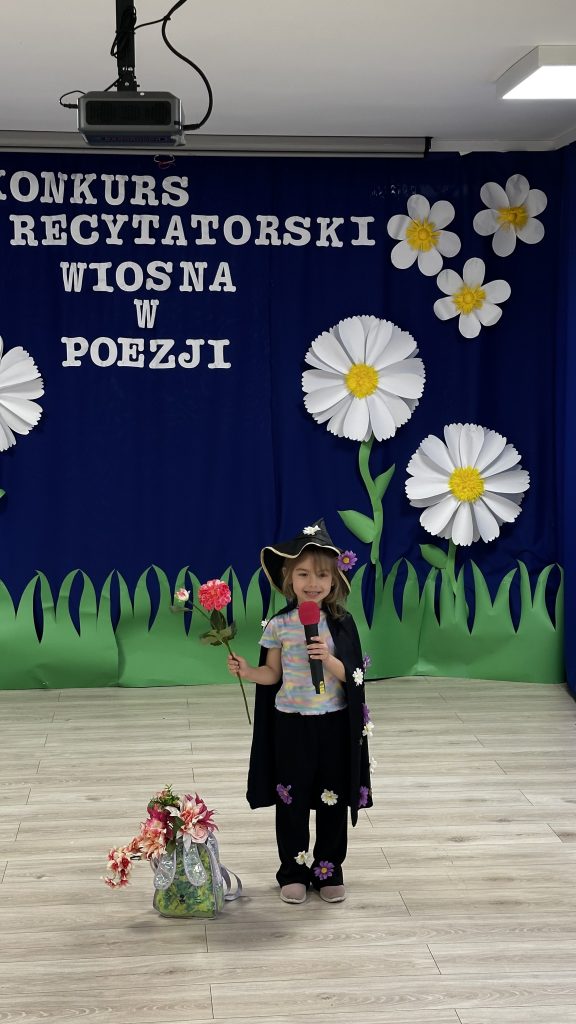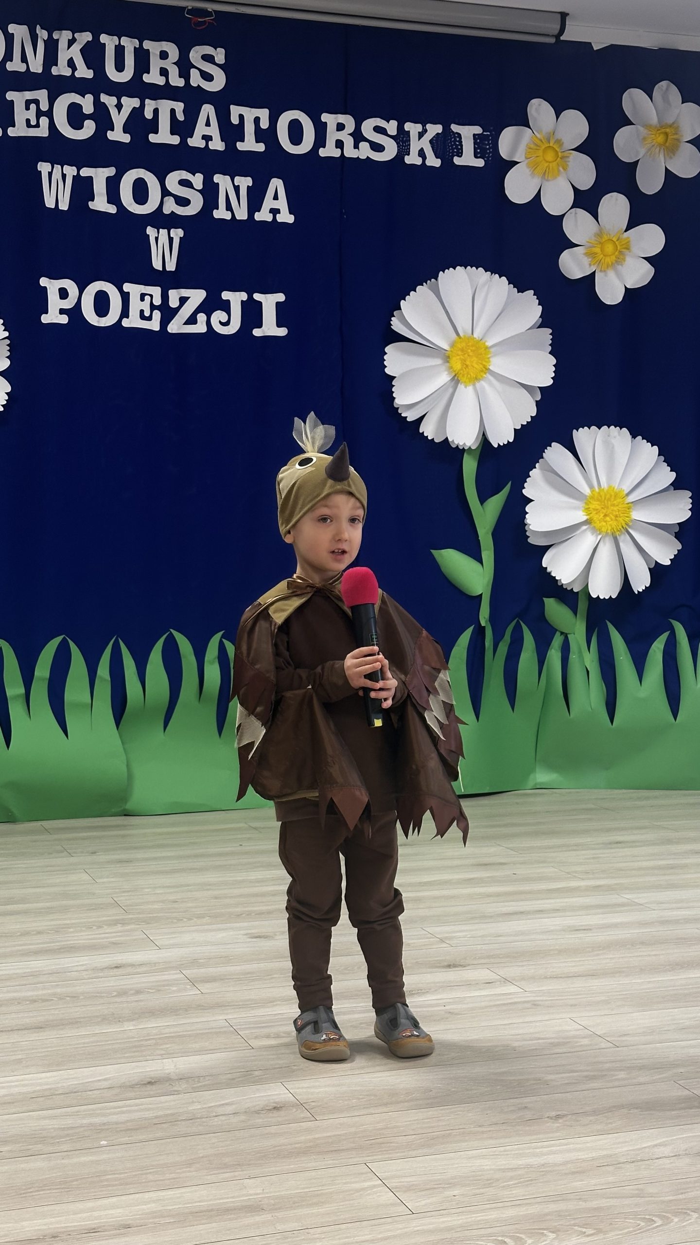 Dnia 17 kwietnia w naszym przedszkolu odbył się Konkurs Recytatorski pt. „Wiosna w poezji”. Wzięło w nim udział 21 małych miłośników poezji z wszystkich grup wiekowych. Mali artyści z dużym zaangażowaniem prezentowali wiersze o tematyce wiosennej, dbając o wyrazistą mowę i odpowiednią interpretację.