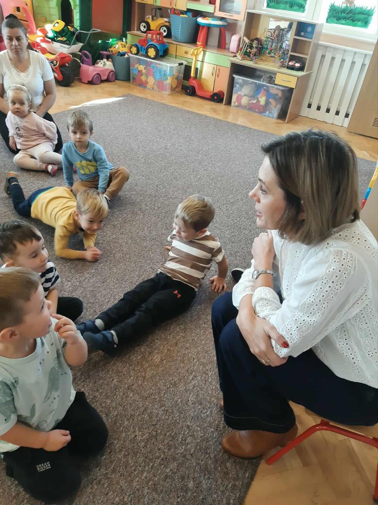 W dniu 19 listopada grupy Elfiki i Motylki odwiedziła Pani Sylwia Bacewicz, autorka wierszy I scenariuszy przedstawień dla dzieci. Dzieci miały okazję dowiedzieć się jak powstaje książka. Pani Sylwia przeczytałam dzieciom bajkę swojego autorstwa „Jak się Krasnal do zimy szykował”. Następnie dzieci miały okazję do wspólnej zabawy z panią Sylwią.