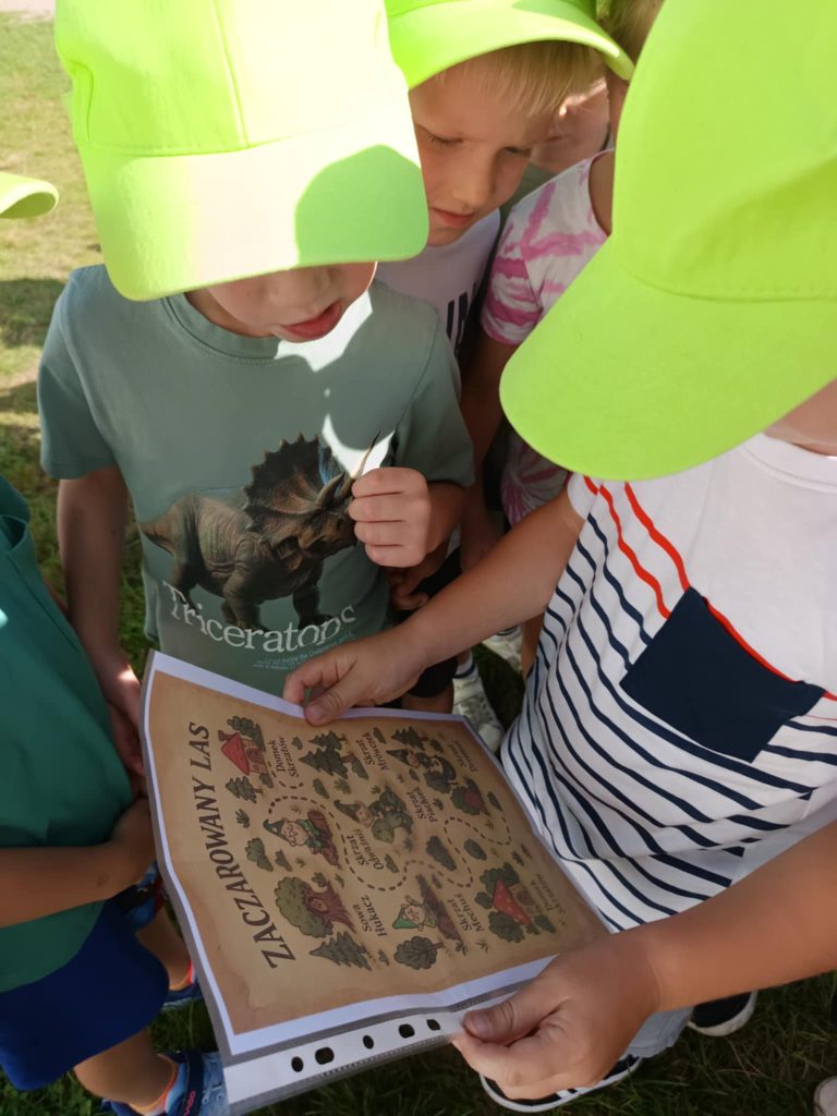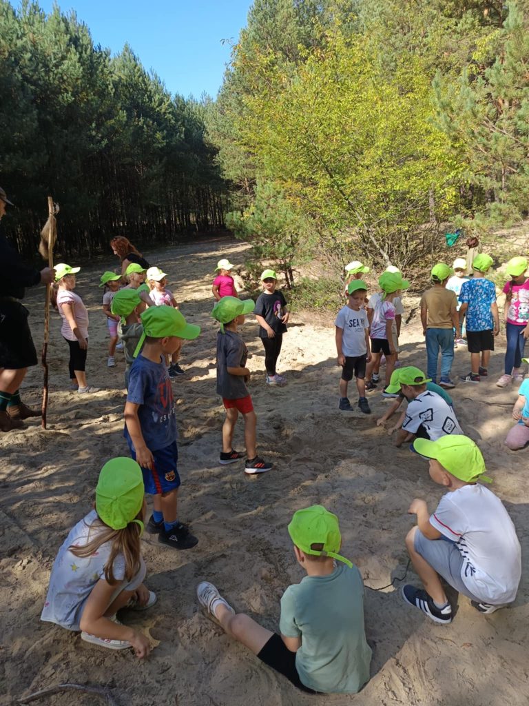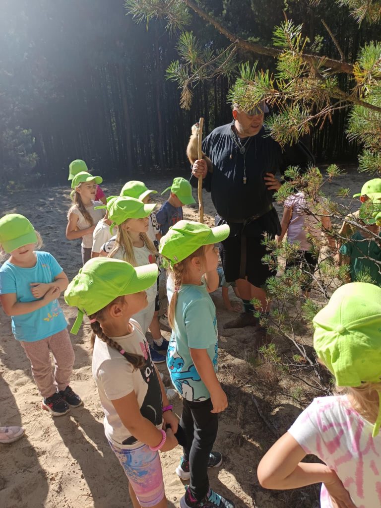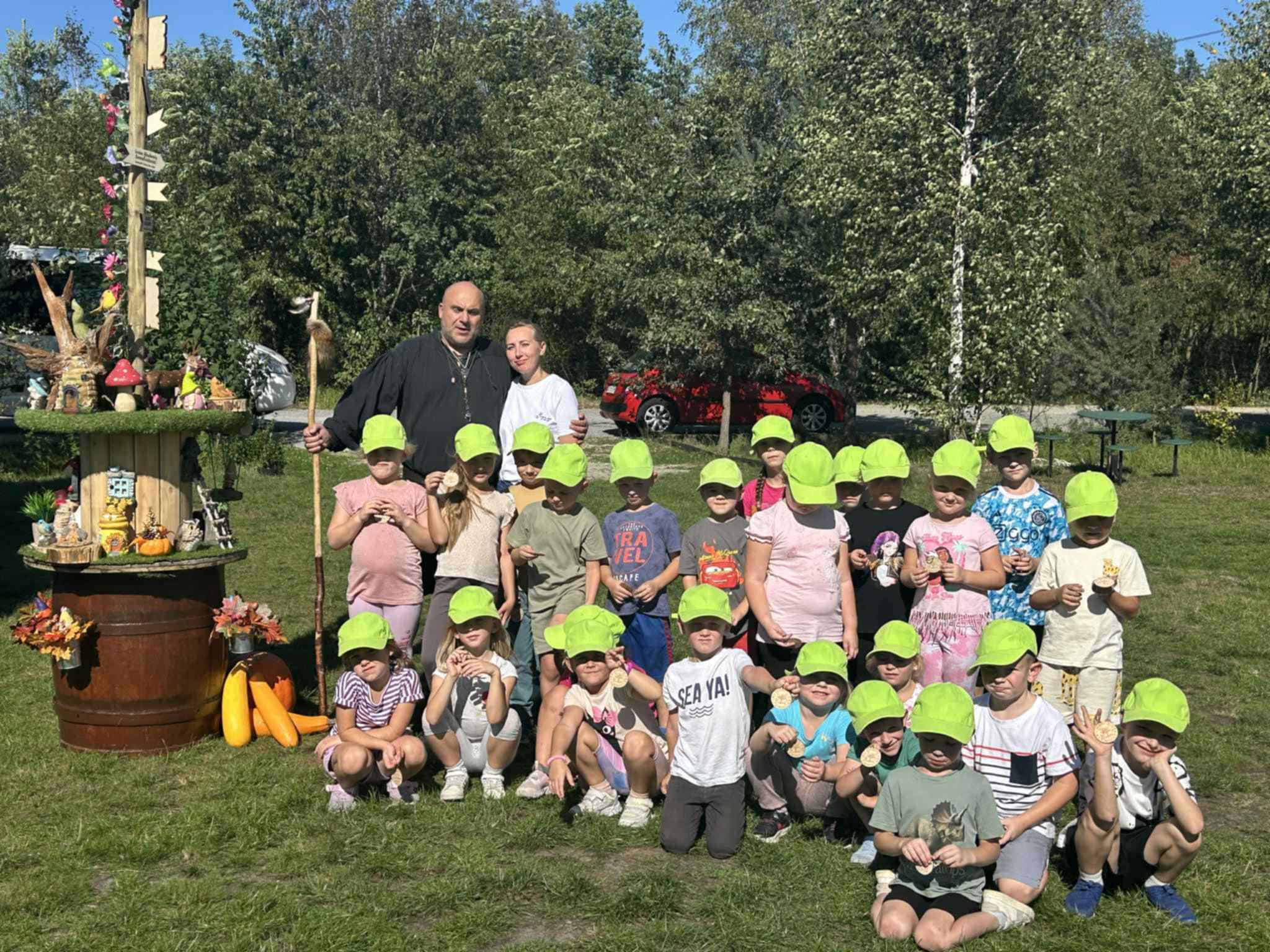 Dzieci wzięły udział w fascynującym spacerze edukacyjnym podczas, którego poznawały różne gatunki drzew, roślin i zwierząt. W czasie wędrówki spotykały leśne skrzaty i zwierzęta, które przygotowały dla dzieci liczne gry, zagadki i zadania.
