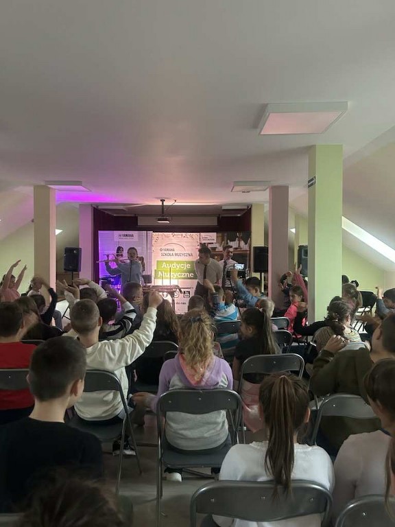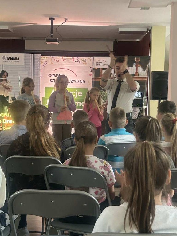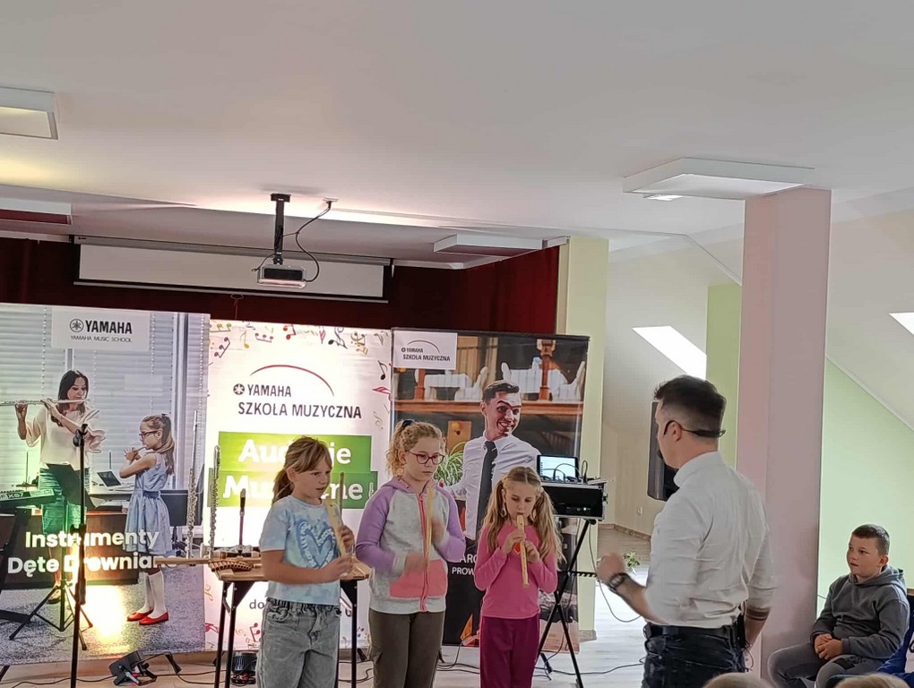Dnia 1 października 2025 roku po raz pierwszy w bieżącym roku szkolnym odbyła się audycja muzyczna poprowadzona przez gości ze Szkoły Muzycznej YAMAHA. Uczniowie klas 1-3 mieli okazję poznać różne rodzaje fletów z rodziny instrumentów dętych drewnianych- od prostych instrumentów używanych w edukacji muzycznej, aż po bardziej rozbudowane odmiany koncertowe.