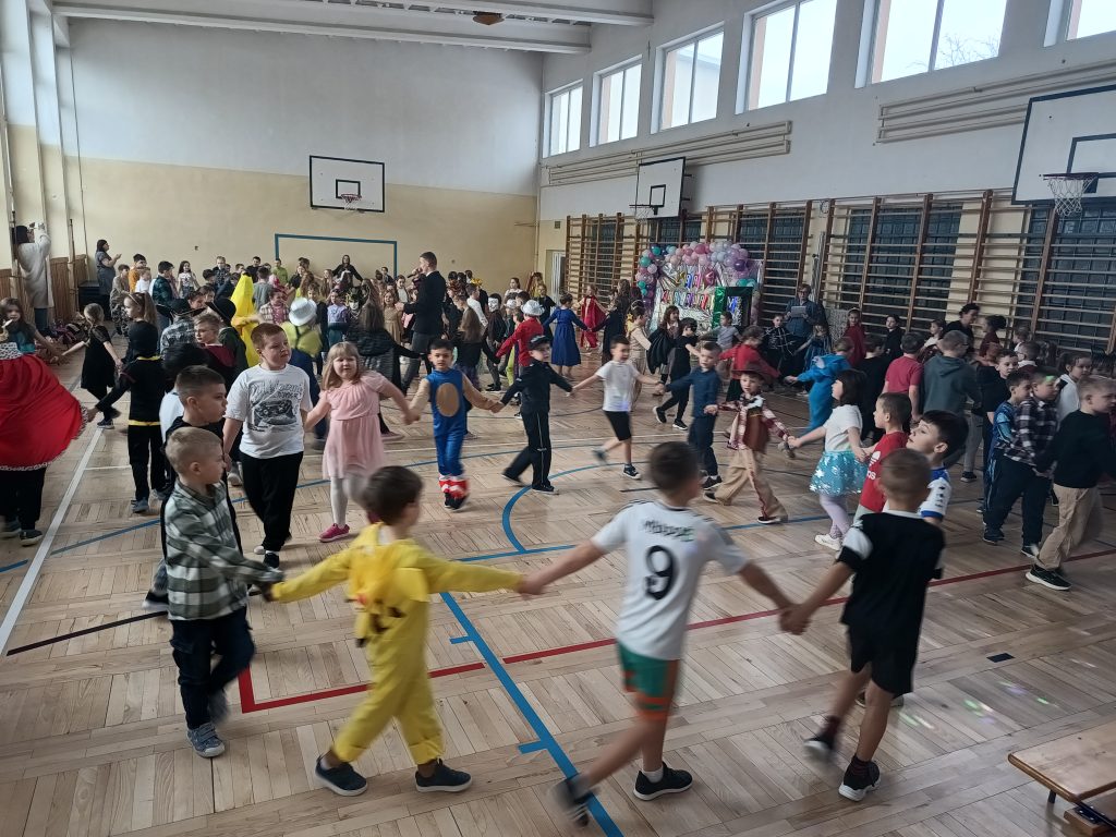 Bal Karnawałowy dla klas 1–3, który odbył się 4 lutego 2026 roku był prawdziwą feerią kolorów, uśmiechów i dobrej zabawy! Tego dnia szkolne korytarze wypełniły się księżniczkami, superbohaterami, zwierzakami i innymi fantastycznymi postaciami. Na uczestników czekała także fotobudka, którą z wielkim zaangażowaniem i kreatywnością udekorowali uczniowie klasy 3c. Całą zabawę poprowadziła energetyczna ekipa Szkoły Muzycznej YAMAHA, która porwała dzieci do tańca, konkursów i wspólnych śmiechów. To był dzień pełen radości, który na długo zostanie w naszej pamięci! 💃🕺😊