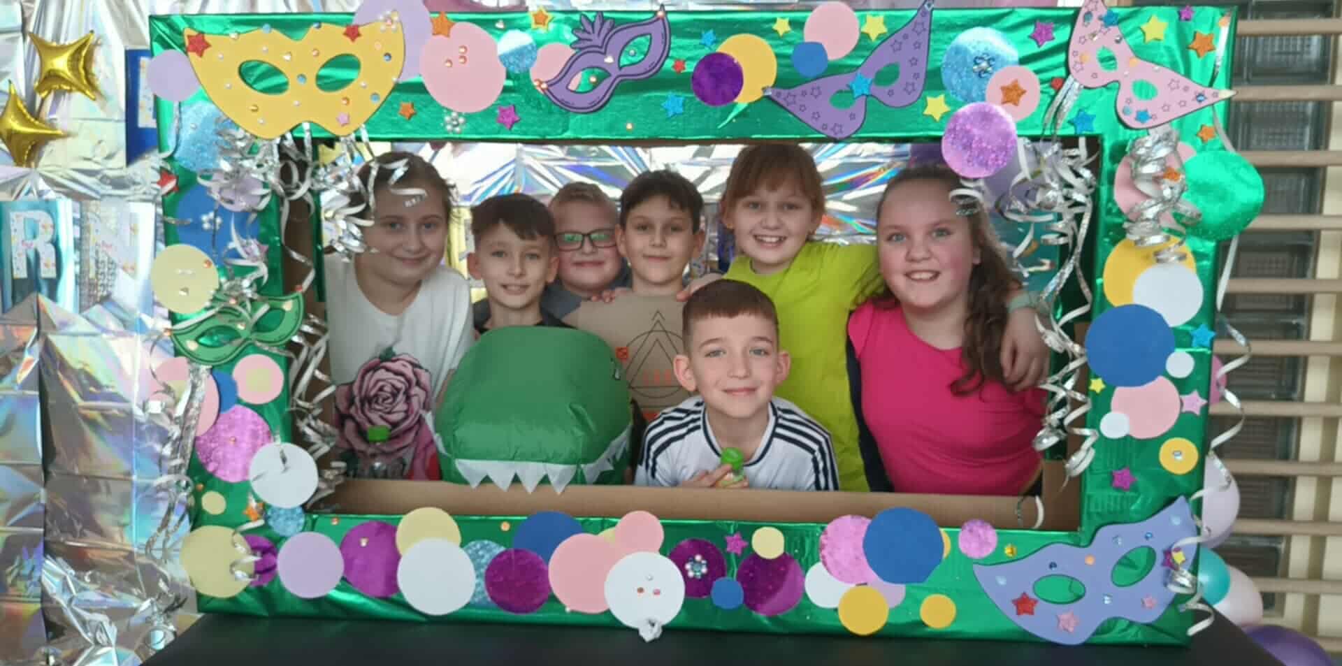 Bal Karnawałowy dla klas 1–3, który odbył się 4 lutego 2026 roku był prawdziwą feerią kolorów, uśmiechów i dobrej zabawy! Tego dnia szkolne korytarze wypełniły się księżniczkami, superbohaterami, zwierzakami i innymi fantastycznymi postaciami. Na uczestników czekała także fotobudka, którą z wielkim zaangażowaniem i kreatywnością udekorowali uczniowie klasy 3c. Całą zabawę poprowadziła energetyczna ekipa Szkoły Muzycznej YAMAHA, która porwała dzieci do tańca, konkursów i wspólnych śmiechów. To był dzień pełen radości, który na długo zostanie w naszej pamięci! 💃🕺😊