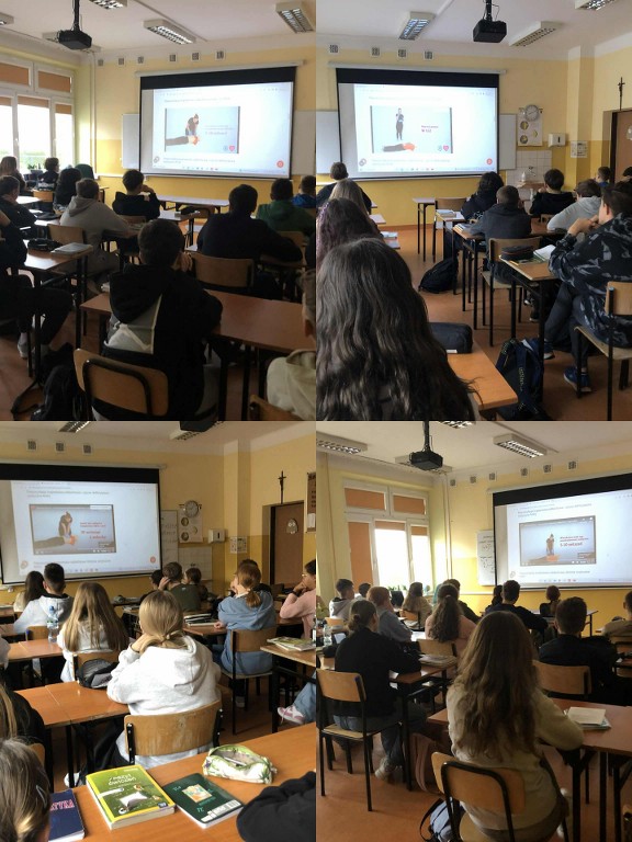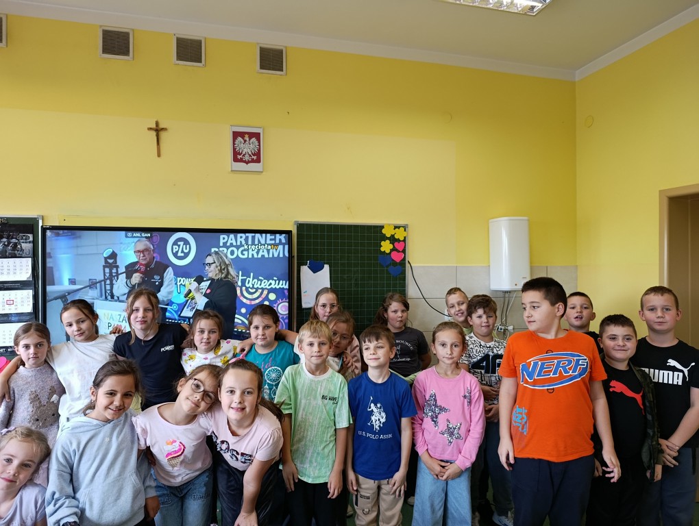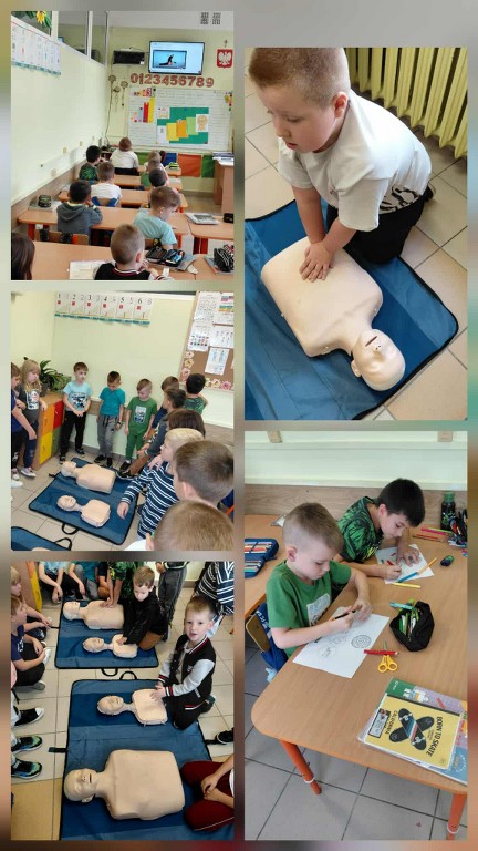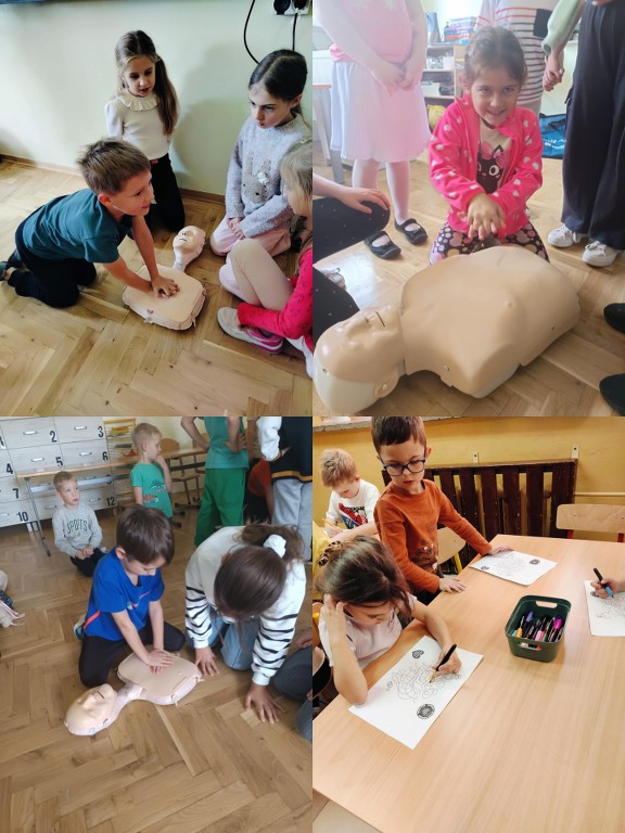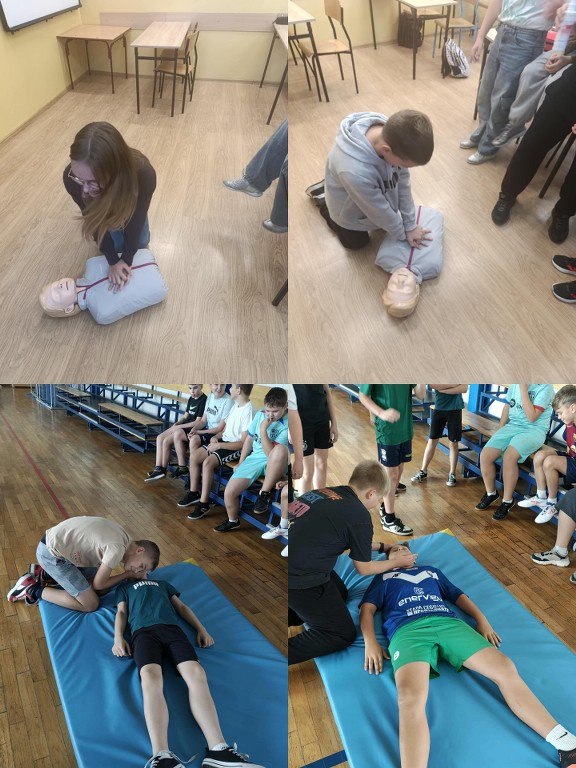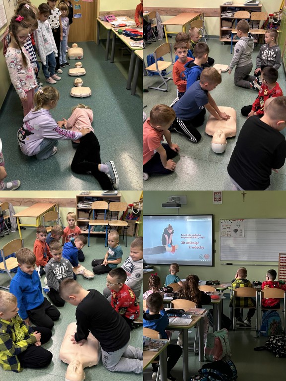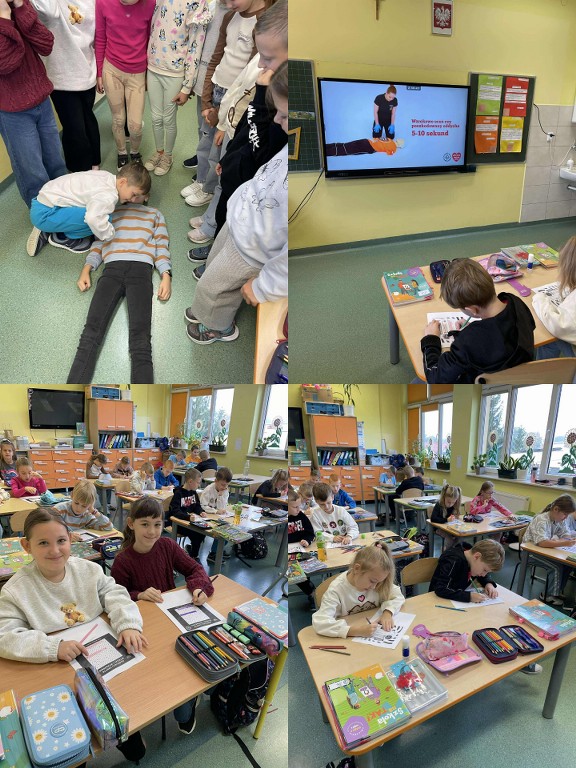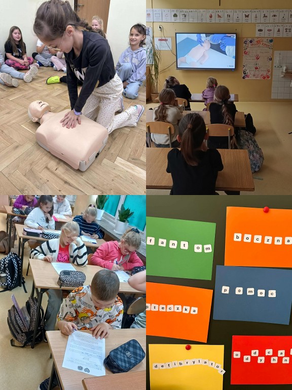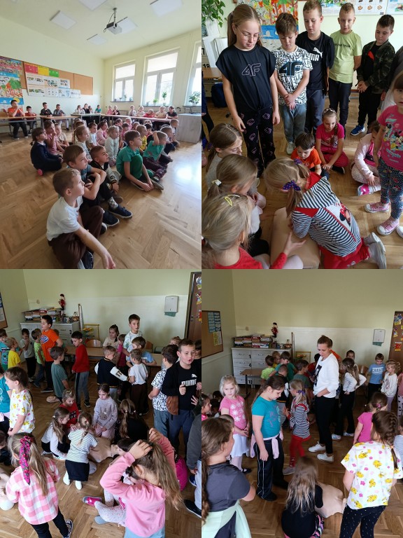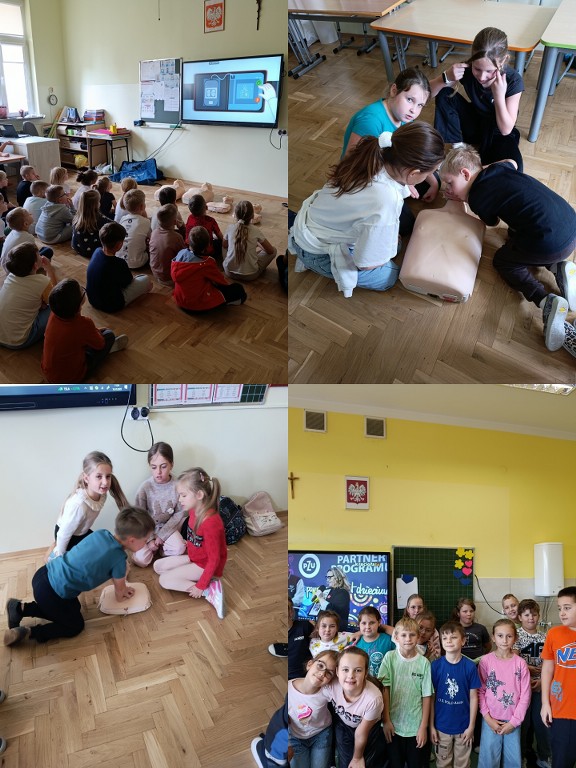 16 października 2025 r., w ramach Europejskiego Dnia Przywracania Czynności Serca, nasza szkoła wzięła udział w ogólnopolskiej akcji bicia rekordu w jednoczesnym prowadzeniu resuscytacji krążeniowo-oddechowej. Wydarzenie zostało zorganizowane przez Fundację Wielka Orkiestra Świątecznej Pomocy w ramach programu „Ratujemy i Uczymy Ratować”. Uczniowie klas I–VIII oraz 6-latki z grupy „Żabki” i „Misie” pod czujnym okiem nauczycieli przez 30 minut ćwiczyli udzielanie pierwszej pomocy na fantomach. Oprócz ćwiczeń praktycznych, uczniowie oglądali edukacyjne filmy dotyczące zasad udzielania pierwszej pomocy, a następnie wykonywali karty pracy, które pomogły utrwalić zdobytą wiedzę. Dzięki temu każdy uczestnik mógł nie tylko spróbować swoich sił w praktyce, ale też zrozumieć, dlaczego szybka reakcja jest tak ważna. Wspólna nauka nie tylko pozwoliła zdobyć cenne umiejętności, ale także pokazała, jak ważna jest szybka reakcja w sytuacjach zagrożenia życia.