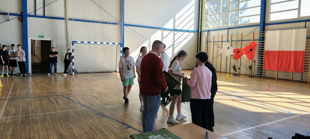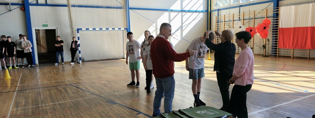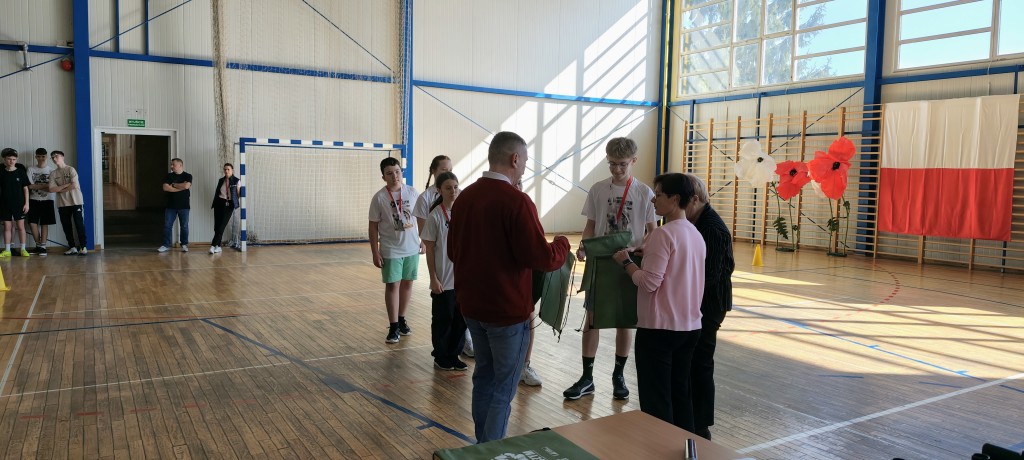 Uczniowie prowadzący sztafetę zostali odzaneczni pamiątkowymi medalami i otrzymali zestawy gadżetów.