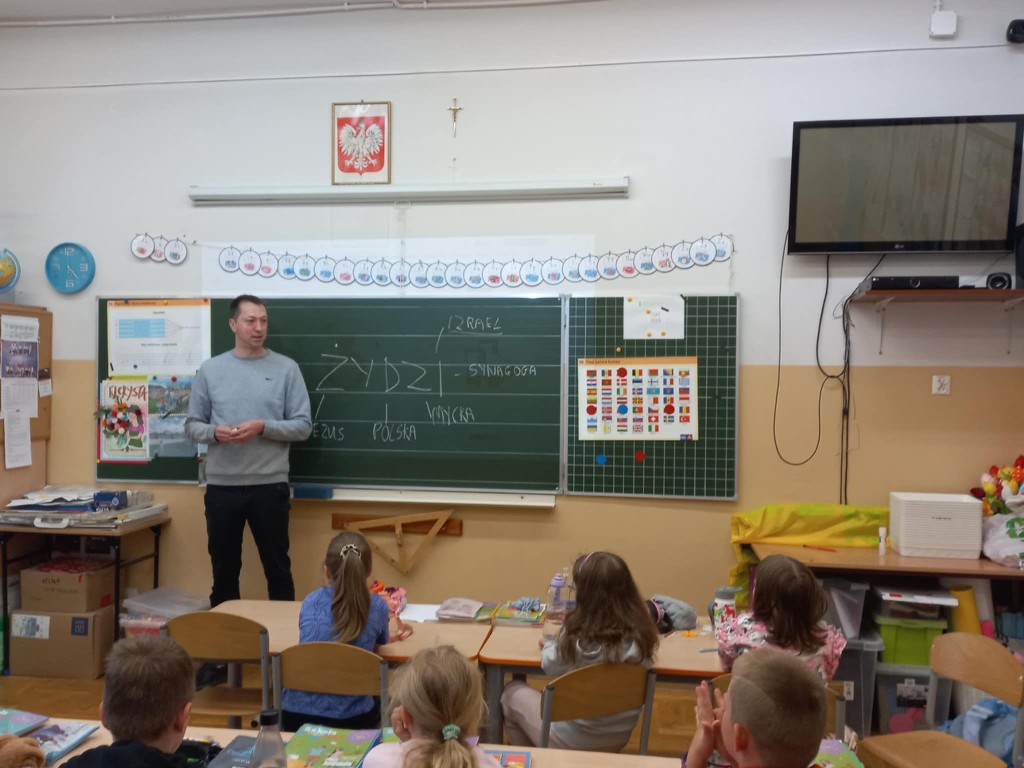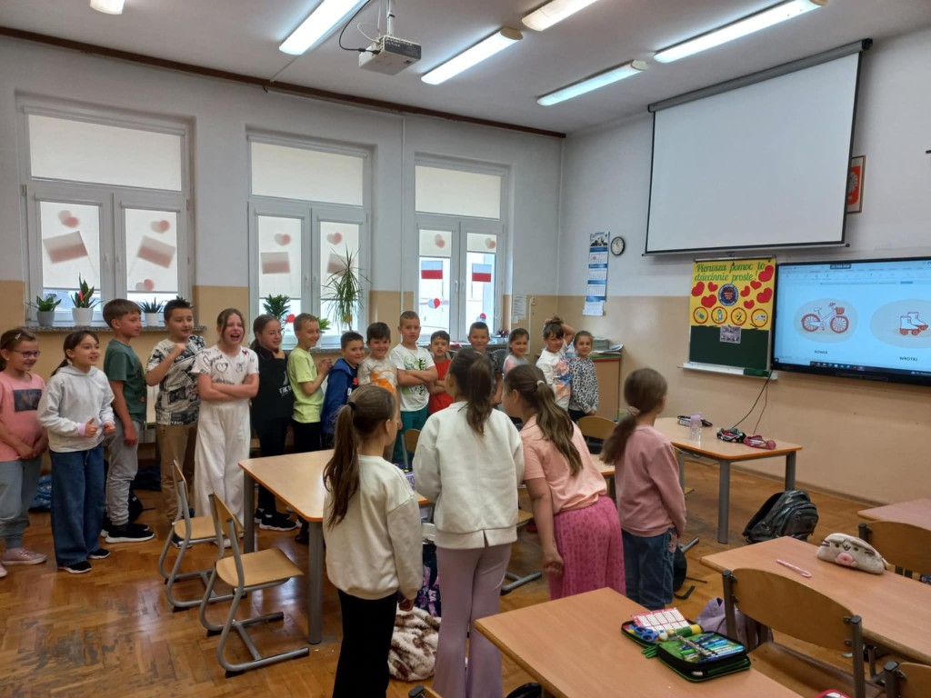 W tym roku, po raz czwarty biblioteka szkolna włączyła się do akcji. 16 kwietnia wszystkie osoby odwiedzające bibliotekę otrzymywały papierowe żonkile jako symbol pamięci o wydarzeniach z 1943 roku. W dniach 6-7 maja odbyły się lekcje biblioteczne w klasach drugich na tematy: Jak być odważnym w dzisiejszym świecie? oraz Przepis na odwagę. Praca z treścią opowiadania Rafała Witka ,,Czelendż”. Uczniowie uważnie wysłuchali opowiadania, które czytała Barbara Wypych. Następnie aktywnie wypowiadali się na temat niebezpiecznego zachowania grupki znajomych, związanego z wykonywaniem różnych wyzwań internetowych, typu siedzenie pięć godzin na murku, rzucanie butami z balkonu do piaskownicy czy chodzenie tyłem do sklepu. Rozpatrywali reakcje głównego bohatera na plan wykonania przez jego kolegów, koleżankę i siostrę czelendżu dotyczącego  wylania na głowę ketchupu i udawania rannego na głównej ulicy Gdyńskiej. Piotrek twierdził, że „Bycie tchórzem wymaga… strasznie dużo odwagi!”. Stanowczo przeciwstawił się tym planom, zadzwonił do taty i poprosił o pomoc. Tym samym wykazał się odwagą, troszcząc się o swoją siostrę i znajomych. Uczniowie poznali przepis na odwagę. Udekorowali kartki ze zdaniami dotyczącymi odważnych zachowań. Na koniec wykonali samodzielnie papierowego żonkila. Atmosfera podczas zajęć była serdeczna i sprzyjająca współpracy.
