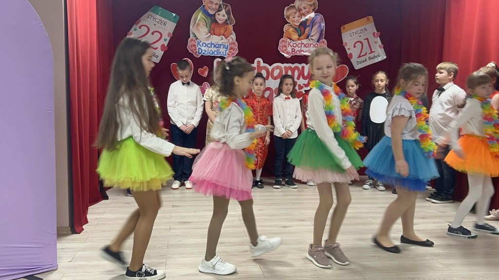 Dzieci włożyły w swoje występy ogrom serca, a zgromadzeni goście nagradzali je gromkimi brawami. Sala wypełniła się po brzegi Babciami i Dziadkami, którzy z dumą i wzruszeniem oglądali popisy swoich wnuków.