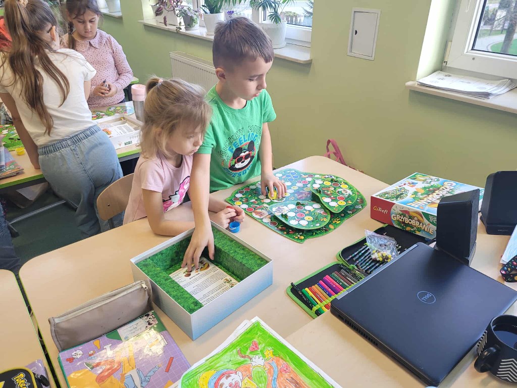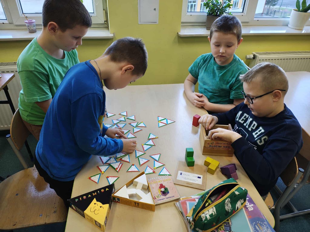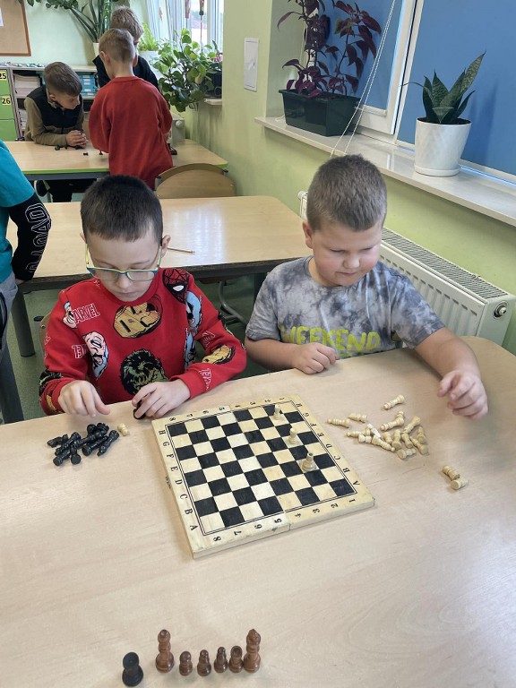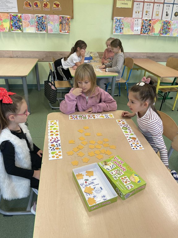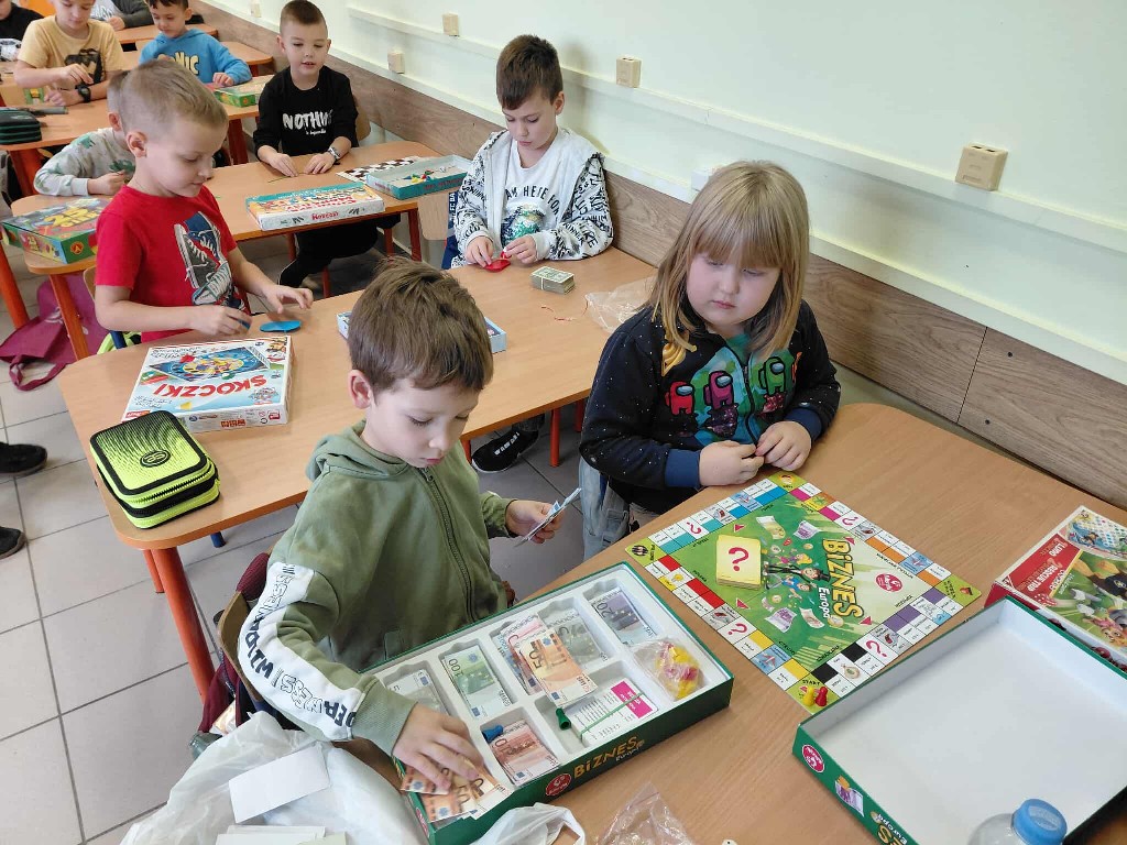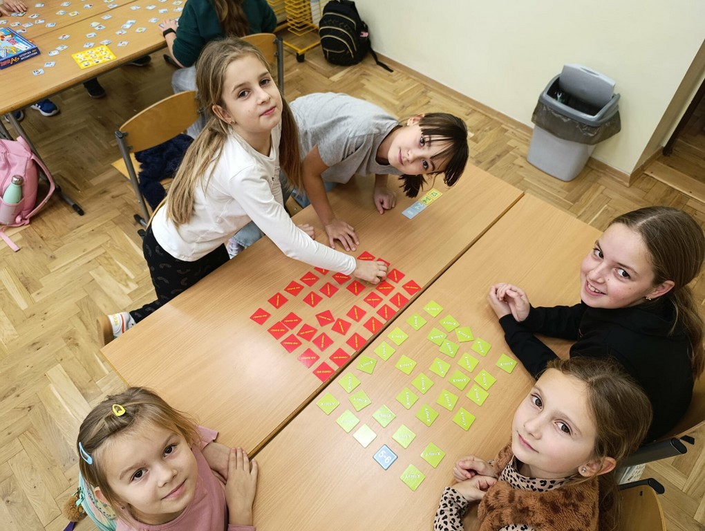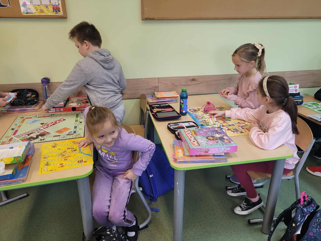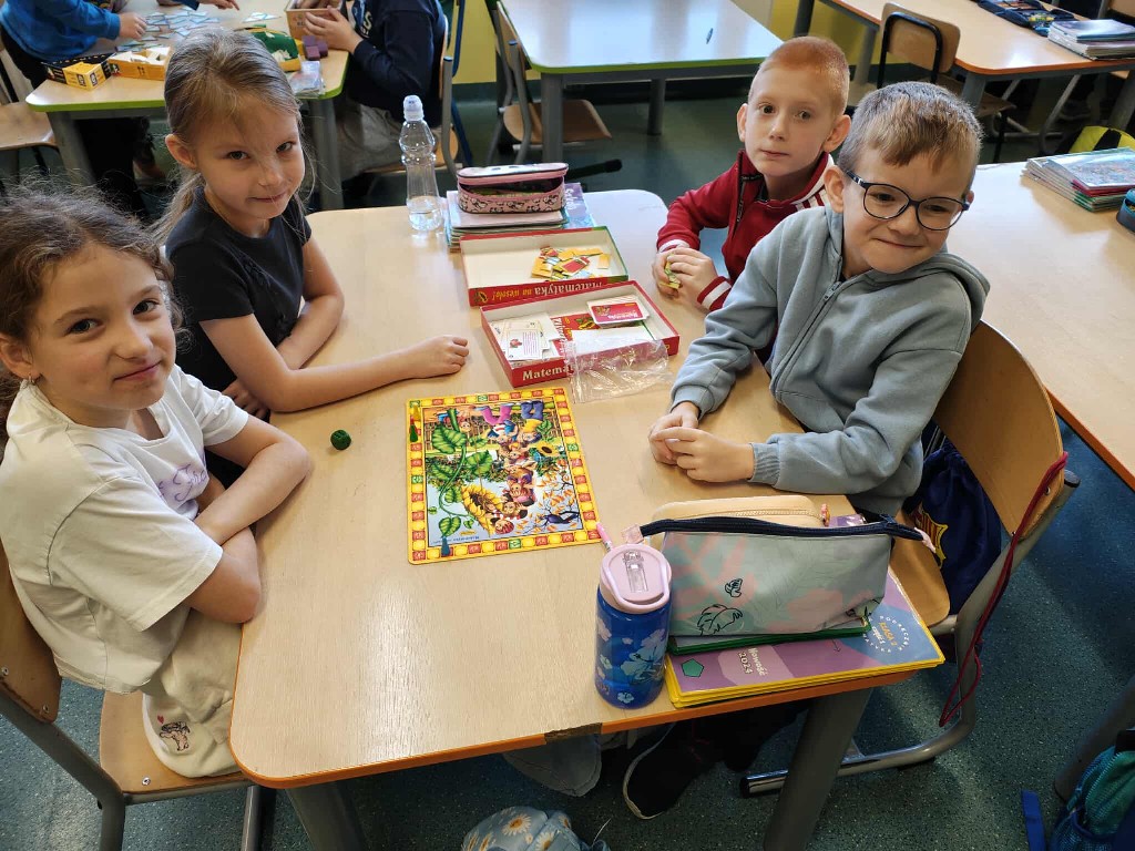W klasach pierwszych i drugich odbył się „Matematyczny Dzień Gier Planszowych”. Uczniowie, korzystając z różnorodnych gier mieli okazję rozwijać swoje umiejętności w atrakcyjny i angażujący ich sposób. Gry planszowe doskonale wspierają logiczne myślenie, uczą planowania i przewidywania, pomagają utrwalać liczenie w pamięci, rozwijają koncentrację, uczą zdrowej rywalizacji oraz współpracy – co czyni je cennym narzędziem w edukacji wczesnoszkolnej. Nie zabrakło też zabaw i ćwiczeń