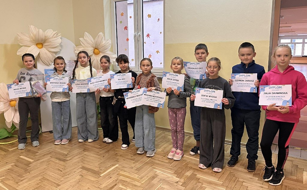 Mistrz klasy 3a: Weronika Weryńska, Mistrz klasy 3b: Maja Myjak, Mistrz klasy 3c: Arkadiusz Gaj.
