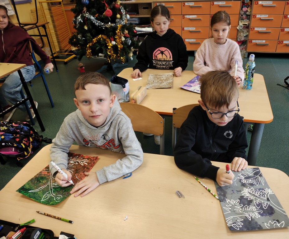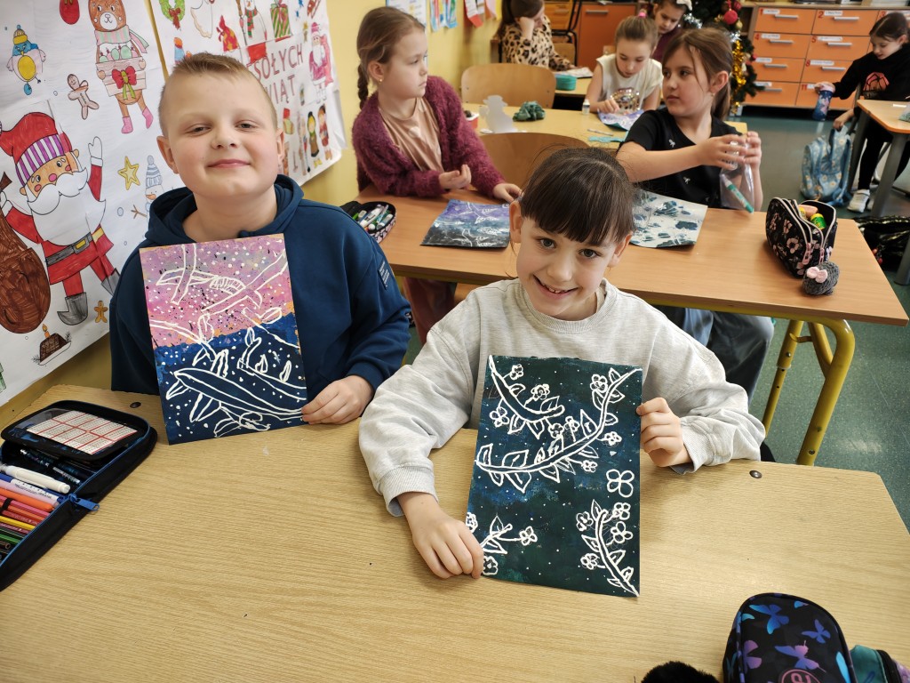 Uczniowie klasy II a i II b na zajęciach rozwijających zainteresowania i uzdolnienia plastyczne w roku szkolnym 2025/26 biorą udział w VI edycji Międzynarodowego Projektu Edukacyjnego – „Kreatywne prace plastyczne”.
