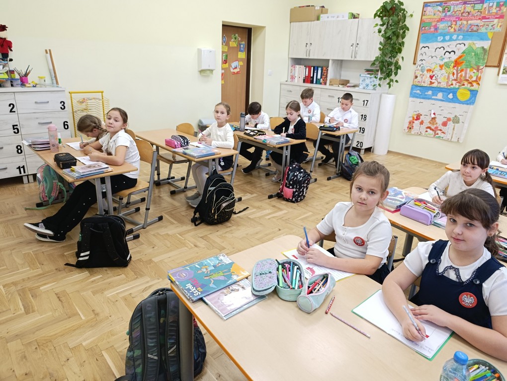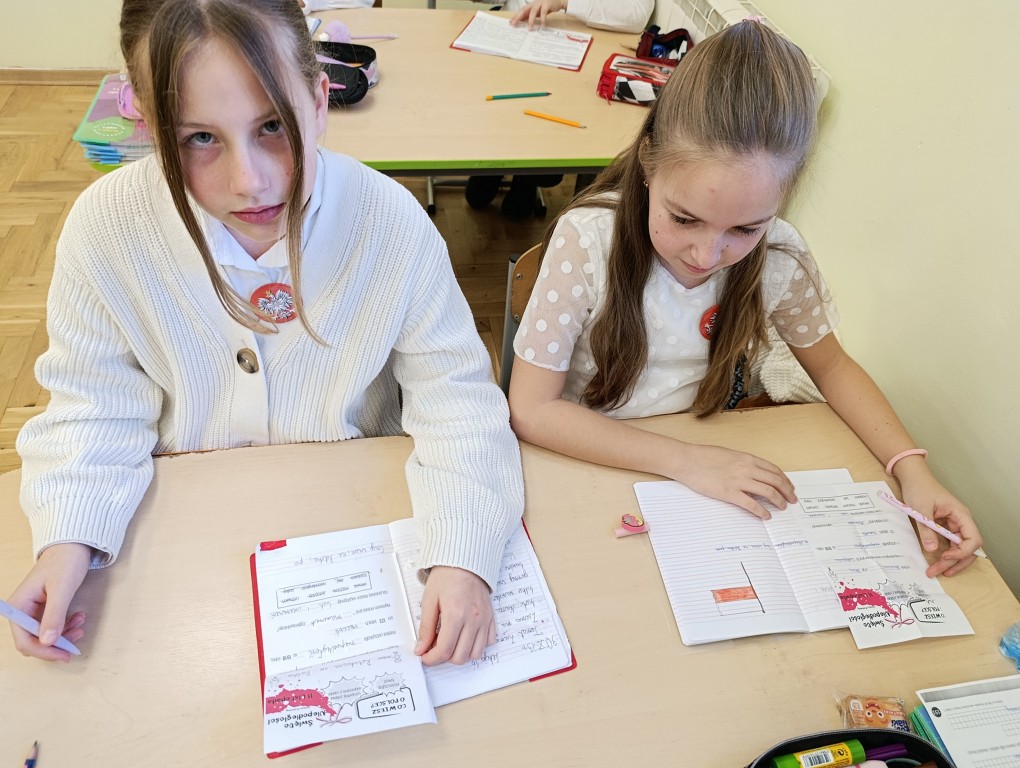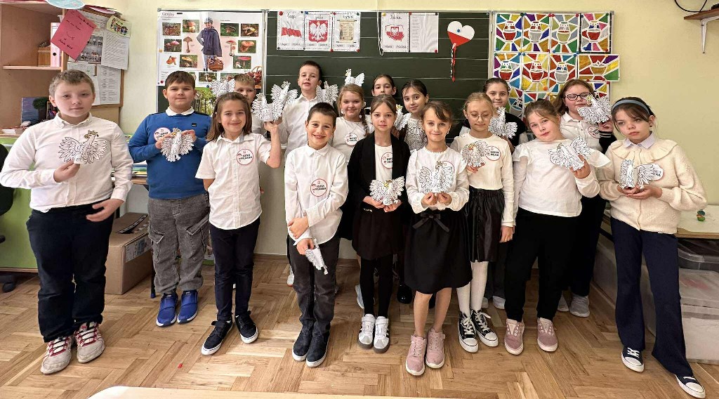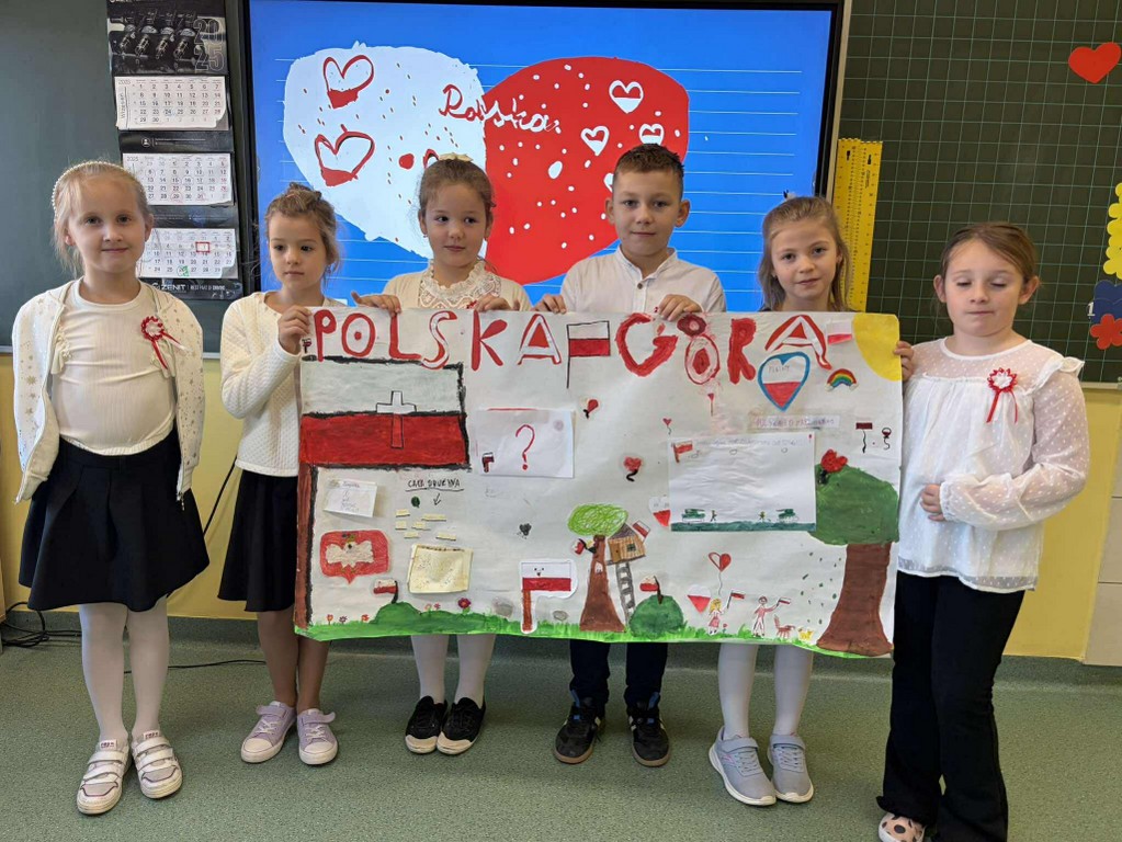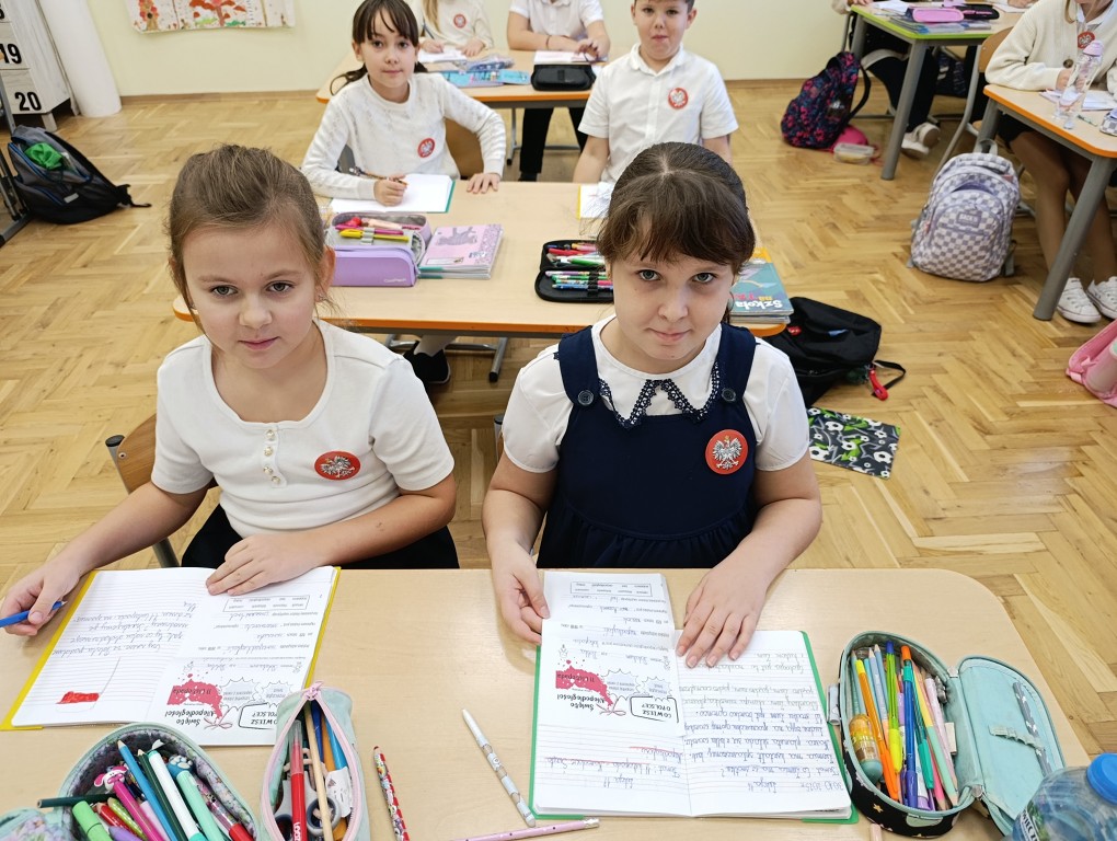 W klasach odbyły się zajęcia tematyczne, podczas których dzieci wykonywały prace plastyczne związane z symbolami narodowymi i historią Polski. Uczniowie z zaangażowaniem rozwiązywali karty pracy, poznając ważne wydarzenia i postacie historyczne.