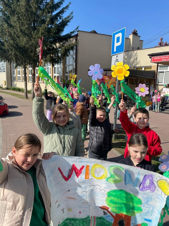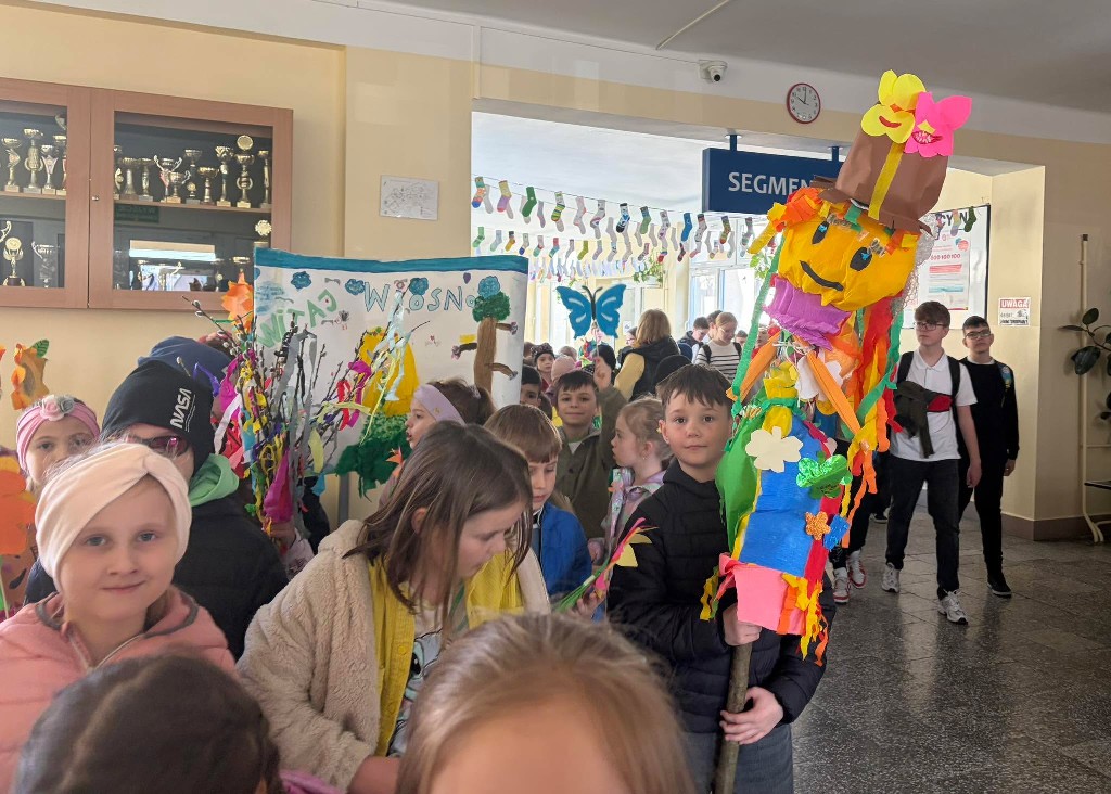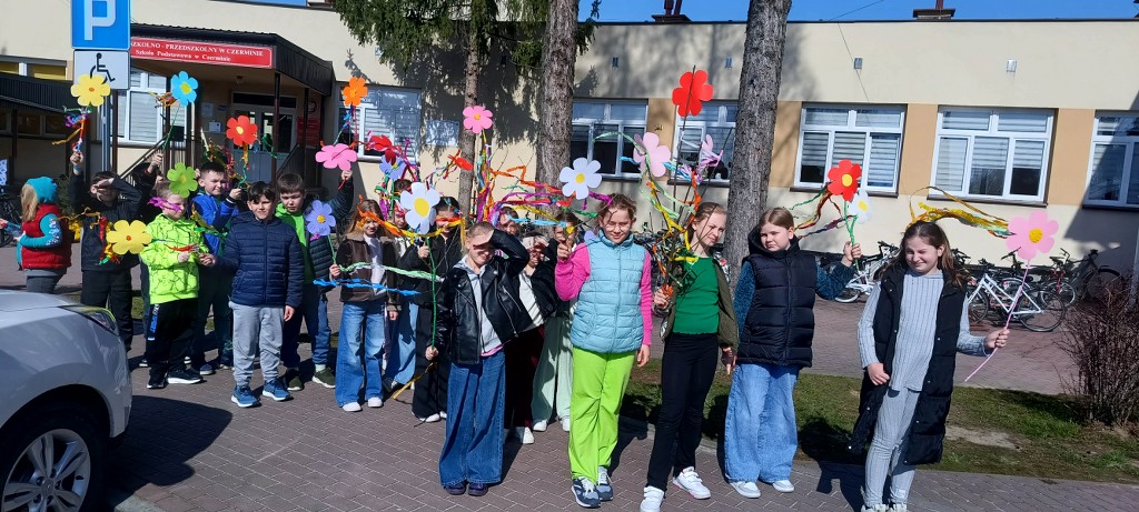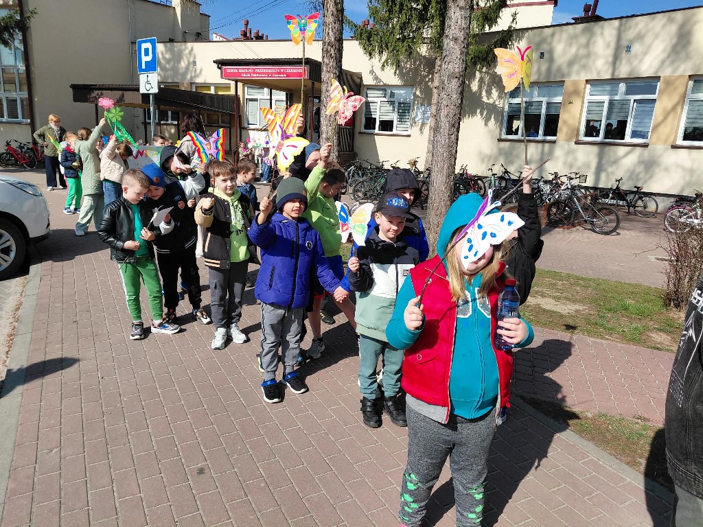 Uczniowie klas 1–3 świętowali nadejście tej pięknej pory roku podczas wesołego pochodu po Czerminie. Dzieci z dumą prezentowały własnoręcznie przygotowane kwiaty oraz kolorowe motyle, które dodały całemu wydarzeniu niezwykłego uroku. Było barwnie, radośnie i bardzo wiosennie!