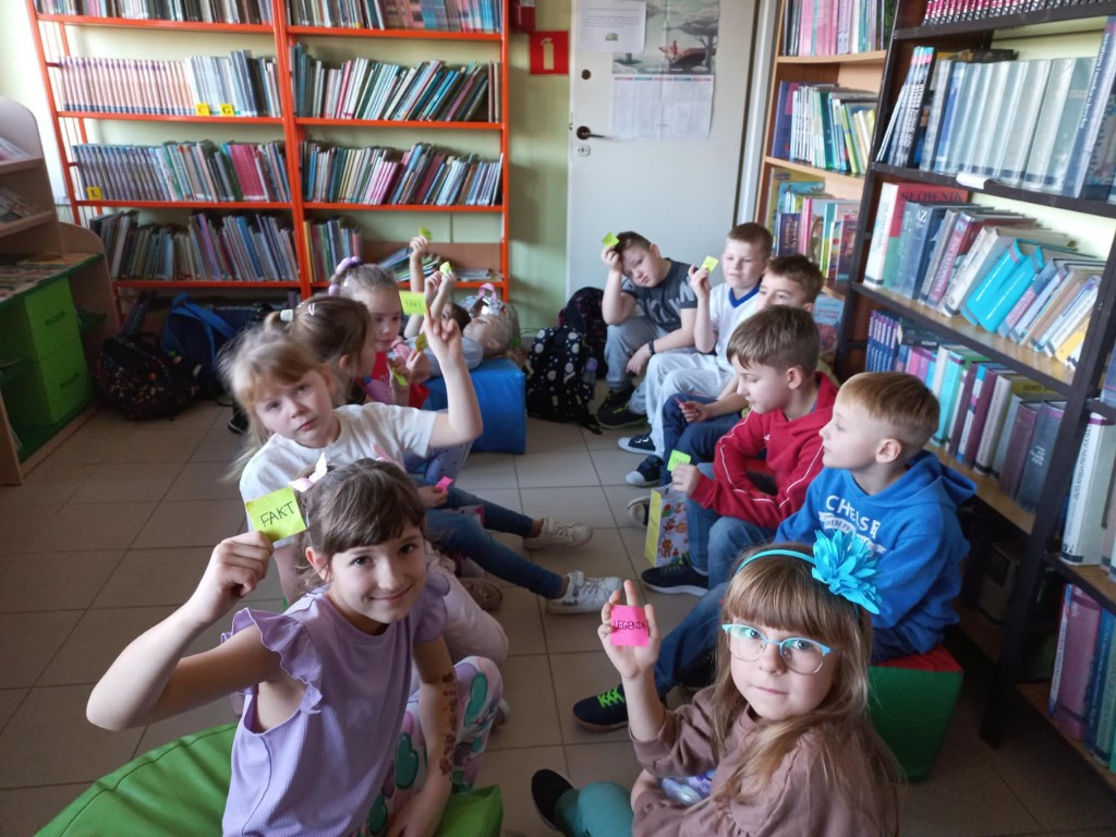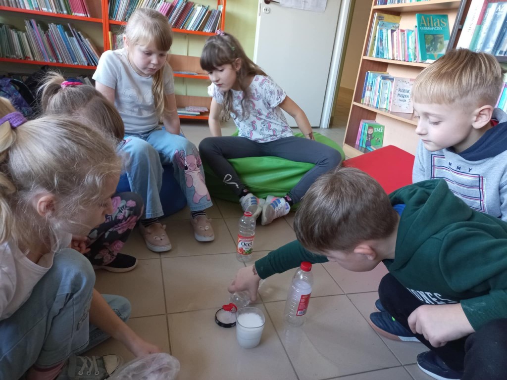 W trakcie zajęć w bibliotece uczniowie przeprowadzili ciekawe eksperymenty: „gejzer w butelce” oraz „słoik cierpliwości”. Wzięli udział w grze „Fakt czy legenda?”, sprawdzając swoją wiedzę o Islandii. Poznali również wiarygodne źródło informacji – stronę National Geographic Kids, gdzie odkrywali ciekawostki