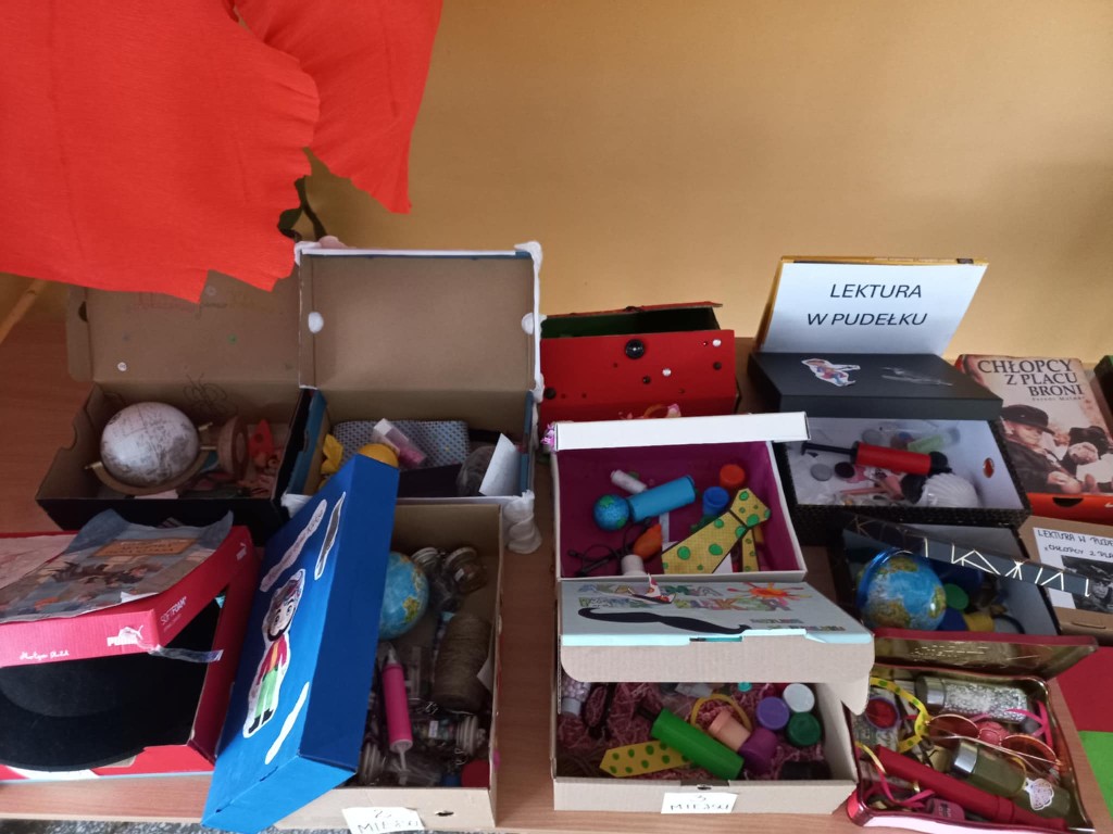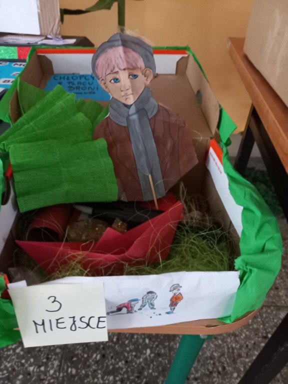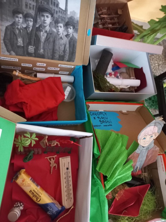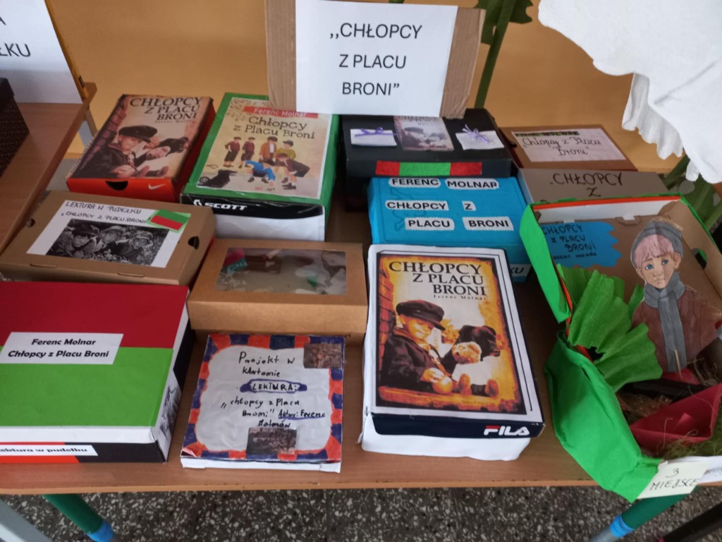 b)w konkursie dla klasy 5a: Lektura w pudełku- ,,Chłopcy z Placu Broni” (wpłynęło 14 prac)