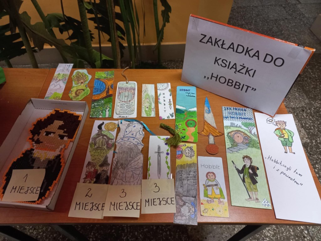 c)w konkursie dla klas 6: zakładka do książki inspirowana ,,Hobbitem” (wpłynęło 16 zakładek):