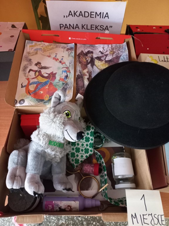 a)w konkursie dla klasy 4b: Lektura w pudełku- ,,Akademia Pana Kleksa” (wpłynęło 10 prac)