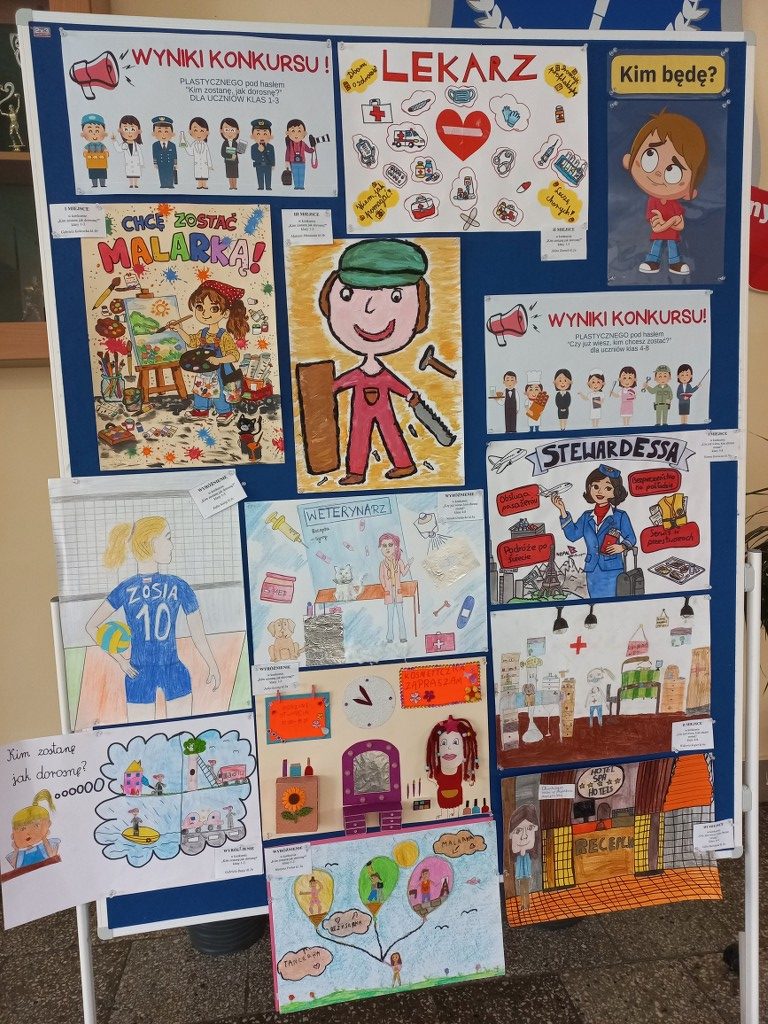 1.04.2026r. komisja konkursowa ogłosiła wyniki konkursu plastycznego realizowanego w ramach programu doradztwa zawodowego dla klas 1-3 pod hasłem „Kim zostanę jak dorosnę?” oraz dla klas 4-8 pod hasłem „Czy już wiesz, kim chcesz zostać? Wyłonienie zwycięzców nie było łatwe z uwagi na dużą liczba praca konkursowych oraz ich wysoki poziom.
