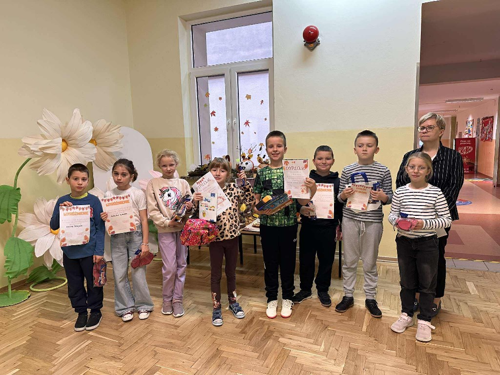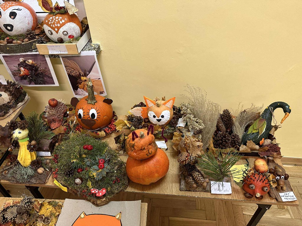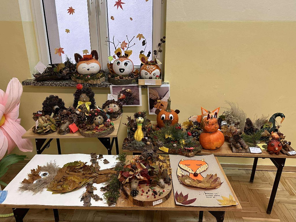 Z radością informujemy, że zakończył się szkolny konkurs plastyczny „Jesienne zwierzątko”, organizowany dla Uczniów klas trzecich, którego celem było rozwijanie kreatywności uczniów poprzez tworzenie prac z darów jesieni — liści, kasztanów, żołędzi, szyszek i innych naturalnych materiałów.