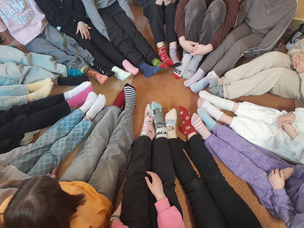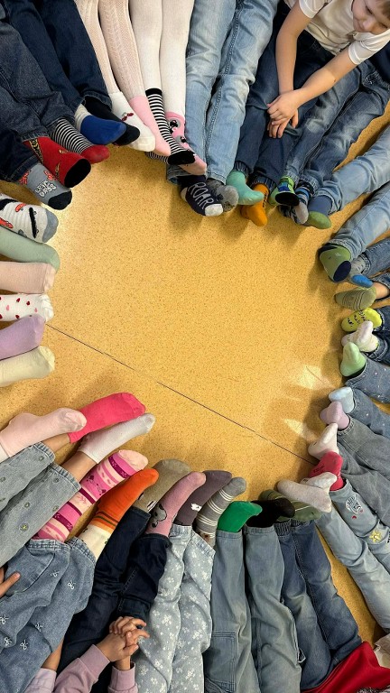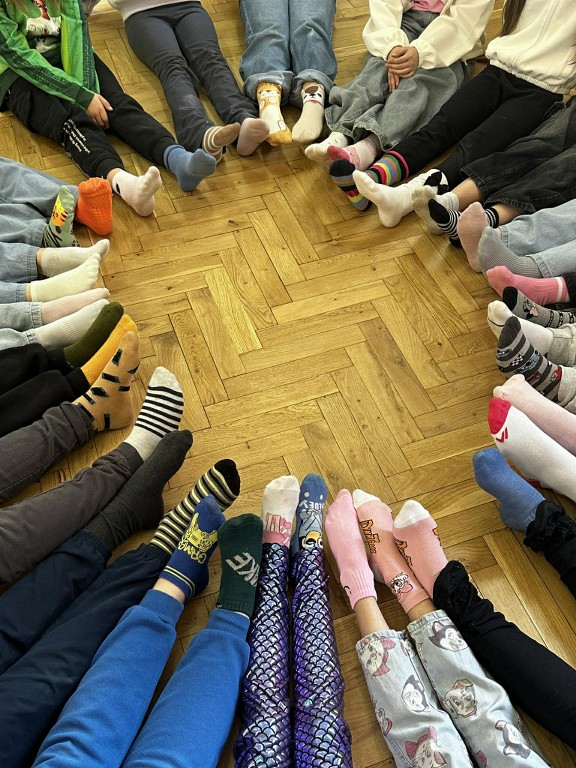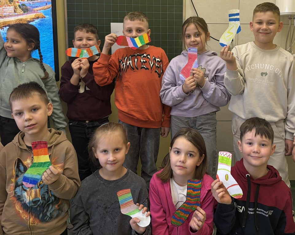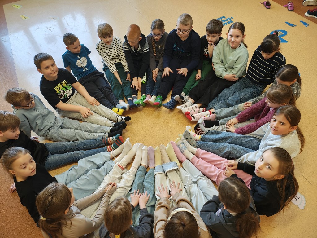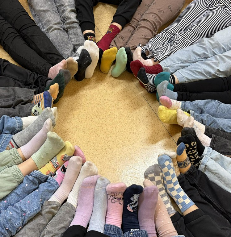 Uczniowie całej szkoły zjednoczyli siły i wzięli udział w wyjątkowej inicjatywie, wykonując oraz zakładając skarpetki nie do pary, które są symbolem solidarności z osobami z zespołem Downa.