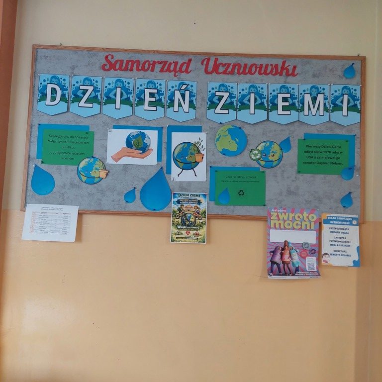Szkolne korytarze na ten czas zamieniły się w wielką “eko – strefę”, dzięki dekoracjom, wystawom oraz gazetkom ściennym. Była okazja przeczytać czym jest Światowy Dzień Ziemi, ciekawostki dotyczące naszej planety czy jakie działania można podjąć, aby chronić przyrodę.
