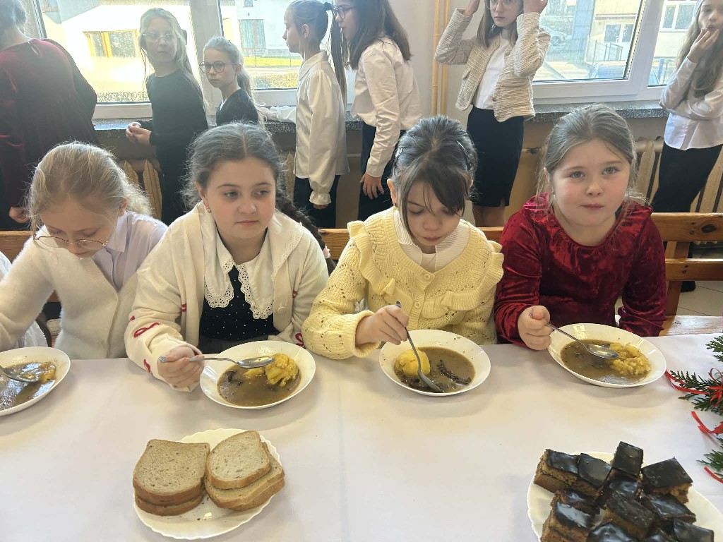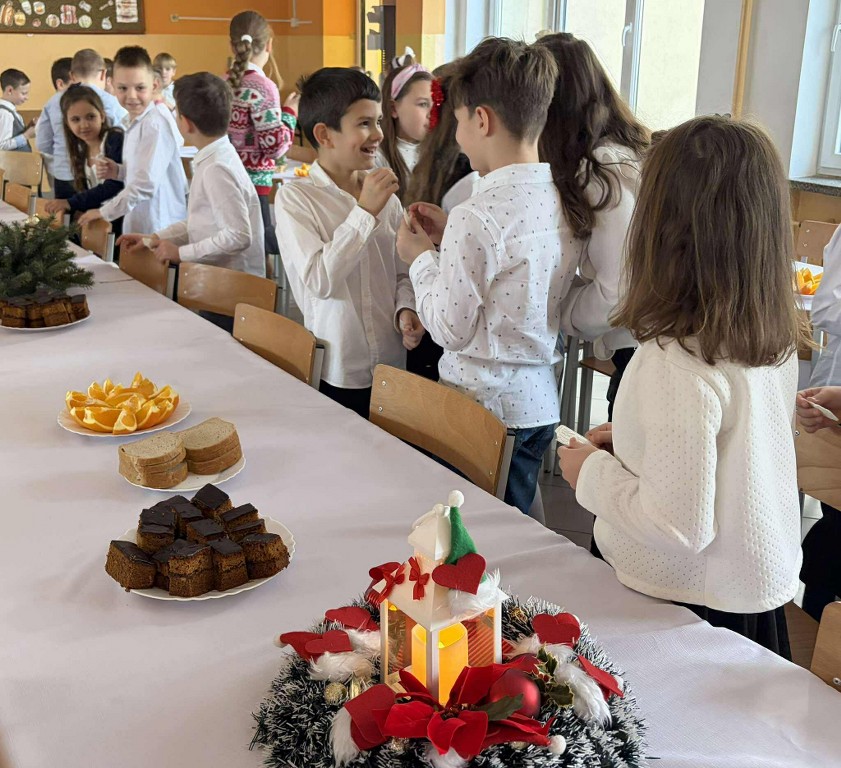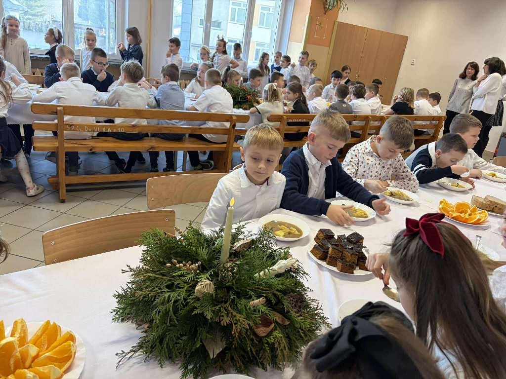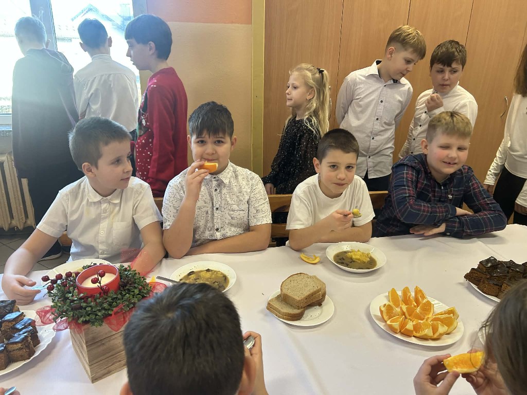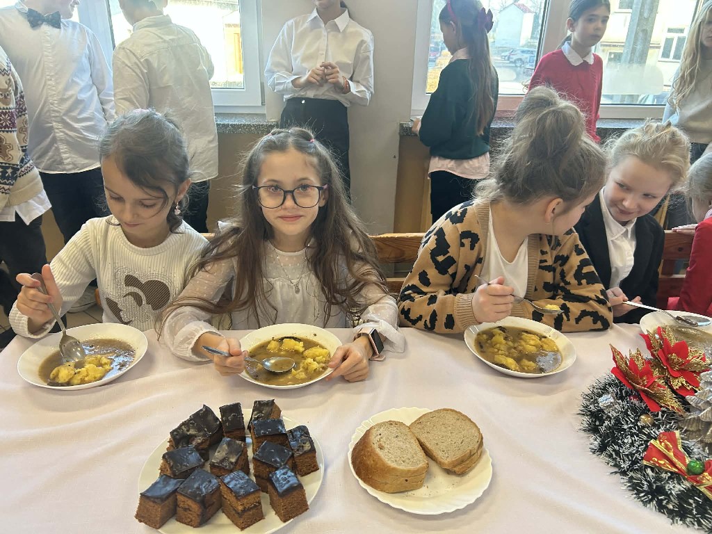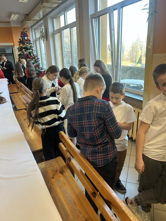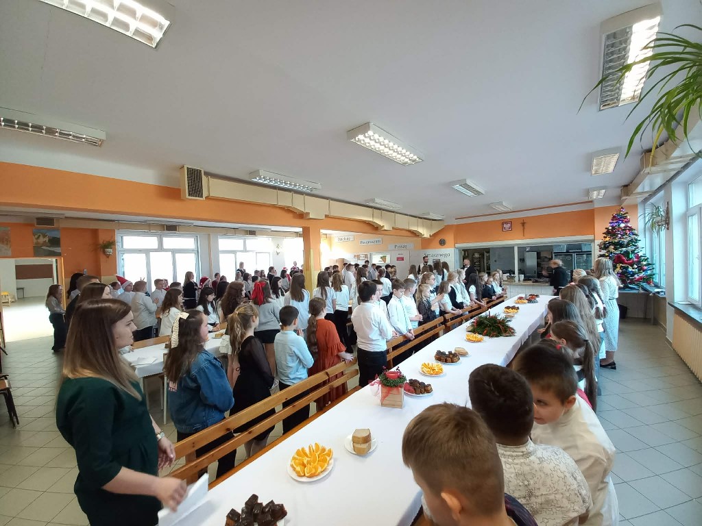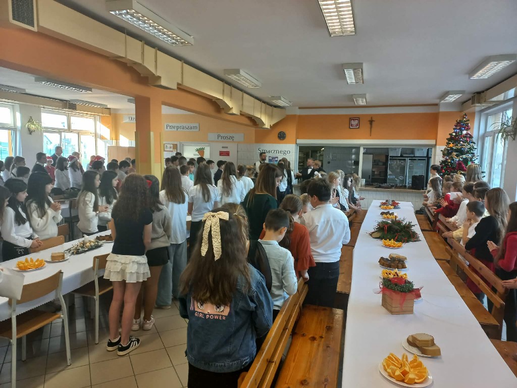 19 grudnia cała społeczność szkolna zgromadziła się, aby wspólnie uczestniczyć w wigilii szkolnej, która była uroczystym i wzruszającym dopełnieniem wcześniej zaprezentowanych jasełek oraz symbolicznym rozpoczęciem świątecznej przerwy od lekcji i zajęć dydaktycznych. Wydarzenie to wprowadziło wszystkich w wyjątkowy klimat nadchodzących Świąt Bożego Narodzenia, sprzyjający refleksji, wyciszeniu oraz budowaniu wzajemnych relacji.