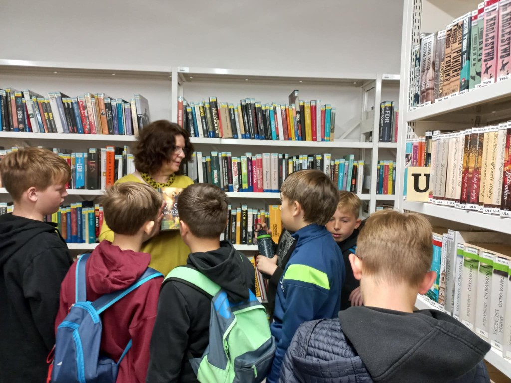 Czwartoklasiści mieli okazję zobaczyć w holu biblioteki wystawę malarstwa Zbigniewa Magleckiego, członka Klubu Środowisk Twórczych Towarzystwa Miłośników Ziemi Mieleckiej im. Władysława Szafera. Zostali oprowadzeni po Wypożyczalniach: dla Dzieci, Młodzieży i Dorosłych, gdzie zapoznali się z ich księgozbiorem. Dowiedzieli się, jak założyć kartę biblioteczną w obecności rodzica i jak z niej korzystać. Dużym zainteresowaniem cieszyły się  audiobooki i filmy w Wypożyczalni Multimedialnej.
