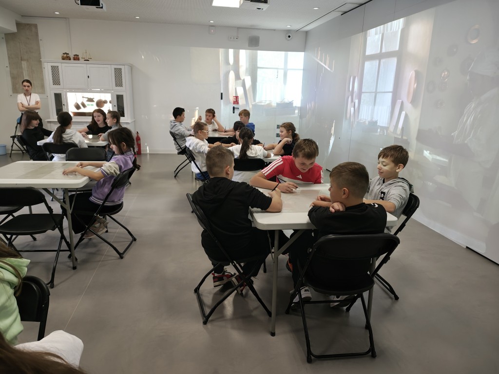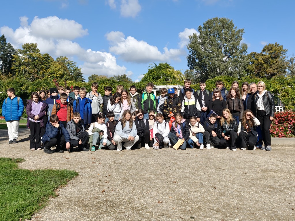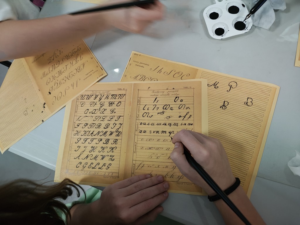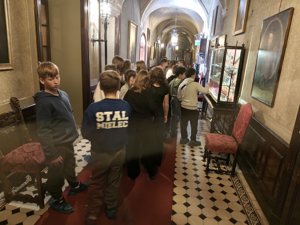 7 października 2025 roku klasy 5A i 5B wraz z wychowawcami i opiekunami brały udział w wycieczce edukacyjno-krajoznawczo-historycznej do Muzeum-Zamku w Łańcucie. W Centrum Edukacji Tradycji im. Jana Potockiego, (dawna Oranżeria) uczniowie uczestniczyli w warsztatach pt.” Piórem i atramentem: Sztuka pięknego pisania”, gdzie odkrywaliśmy dawną sztukę kaligrafii. Dowiedzieliśmy się, jak dawniej pisano i poznaliśmy historię narzędzi pisarskich, a następnie spróbowaliśmy swoich sił w tej eleganckiej sztuce. Pisaliśmy piórem ze stalówką maczaną w czarnym atramencie. Oj, ręce były bardzo brudne!
