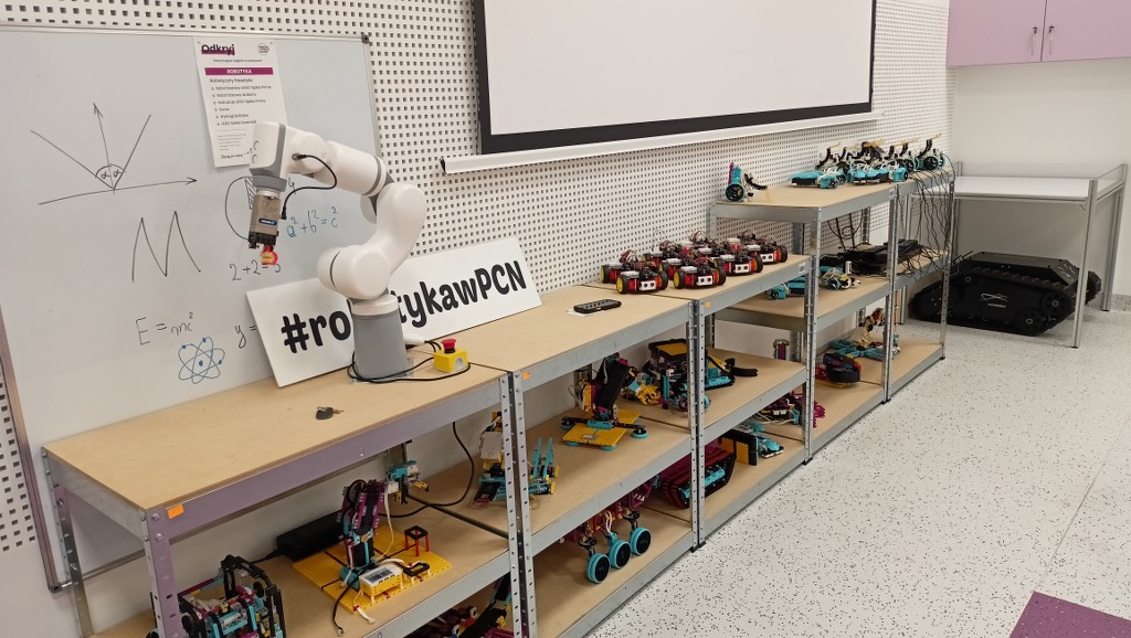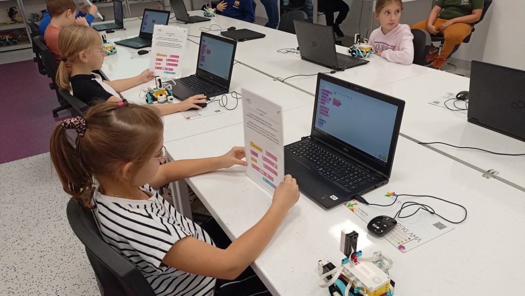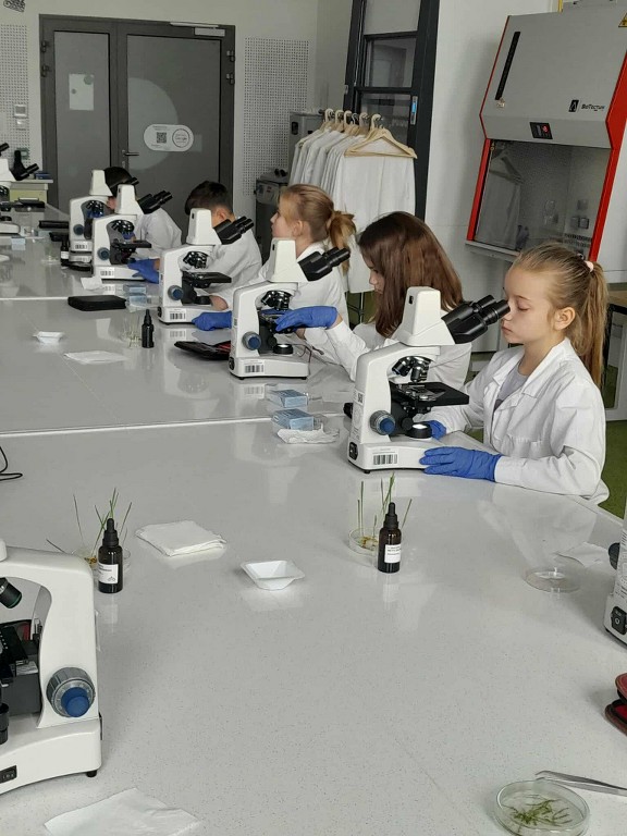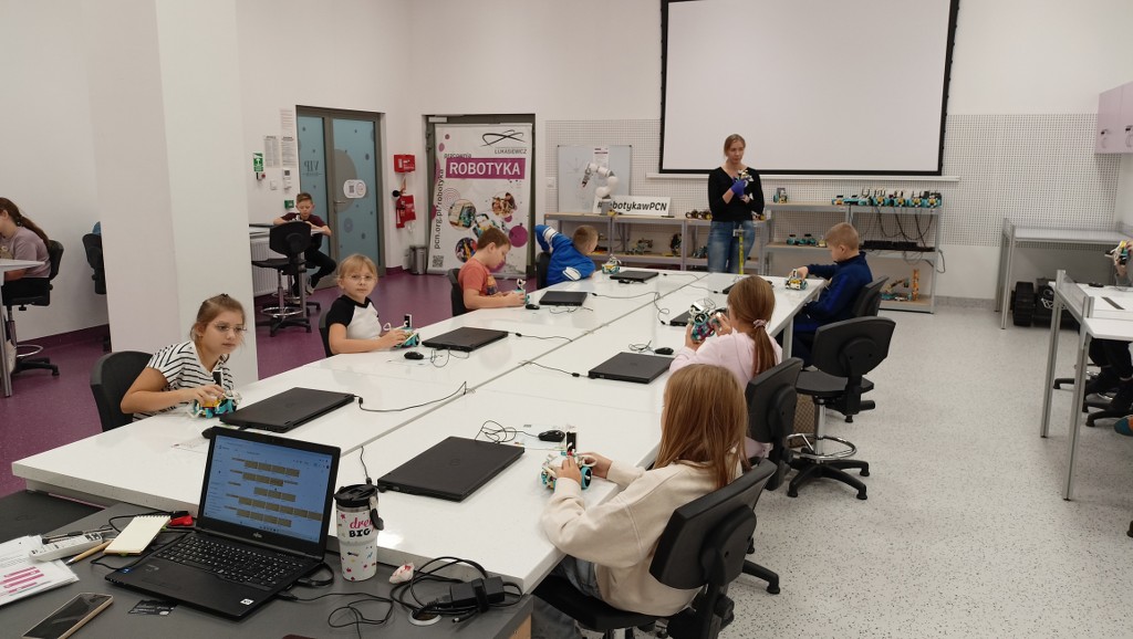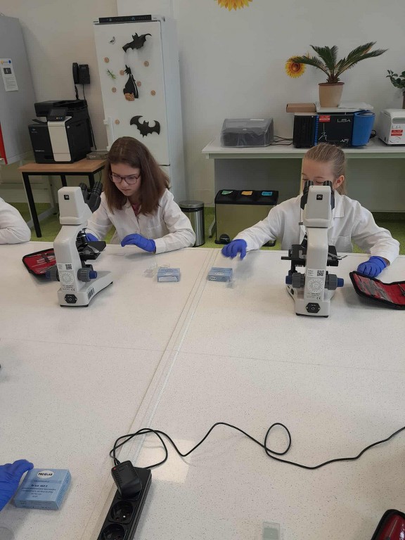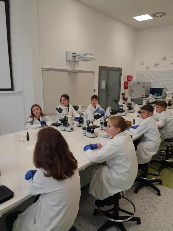 Wizyta rozpoczęła się od zajęć warsztatowych z robotyki, biologii, Fablab, podczas których uczniowie w sposób praktyczny poznawali tajniki z poszczególnych dziedzin nauki: programowali roboty, własnoręcznie wykonywali zawieszki, obserwowali świat pod mikroskopem.