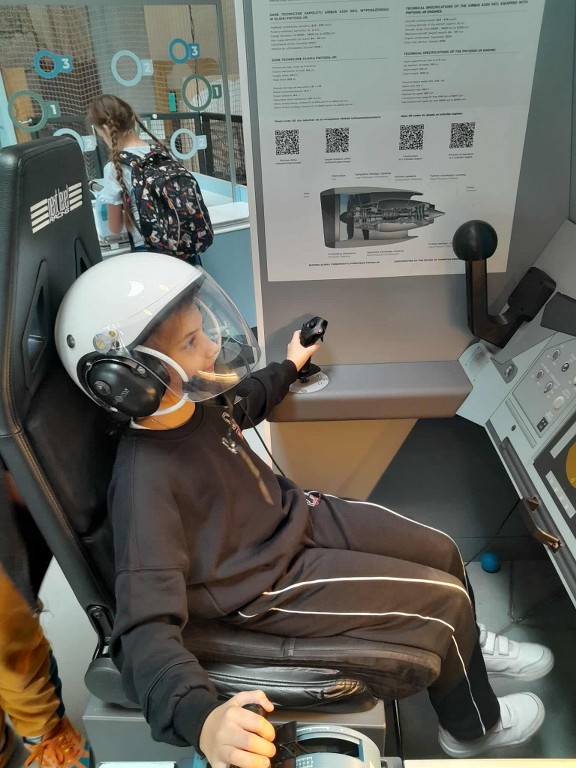 Następnie nadszedł czas na zwiedzanie ekspozycji stałej. Uczestnicy wycieczki mogli poznawać tajniki otaczającego nas świata za pomocą interaktywnych eksponatów. Wystawy z dziedziny lotnictwa, przyrody, biologii oferowały mnóstwo ciekawych stanowisk, gdzie każdy mógł znaleźć coś ciekawego dla siebie.