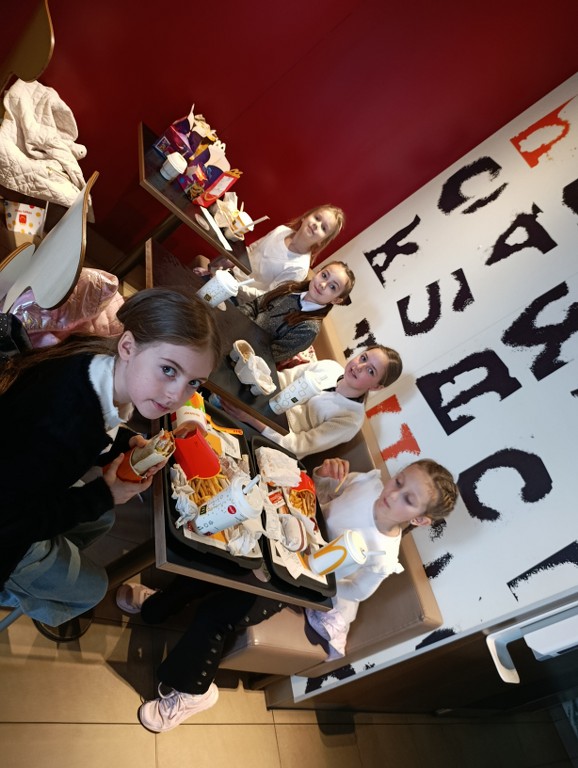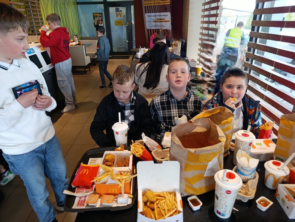 Po zakończonym spektaklu uczestnicy wycieczki udali się do restauracji McDonald’s. Wspólny posiłek był doskonałą okazją do rozmów o ulubionych scenach, wymiany wrażeń oraz chwil relaksu po pełnym emocji widowisku. Radość dzieci i ich entuzjastyczne komentarze potwierdziły, że był to dzień pełen niezapomnianych przeżyć.