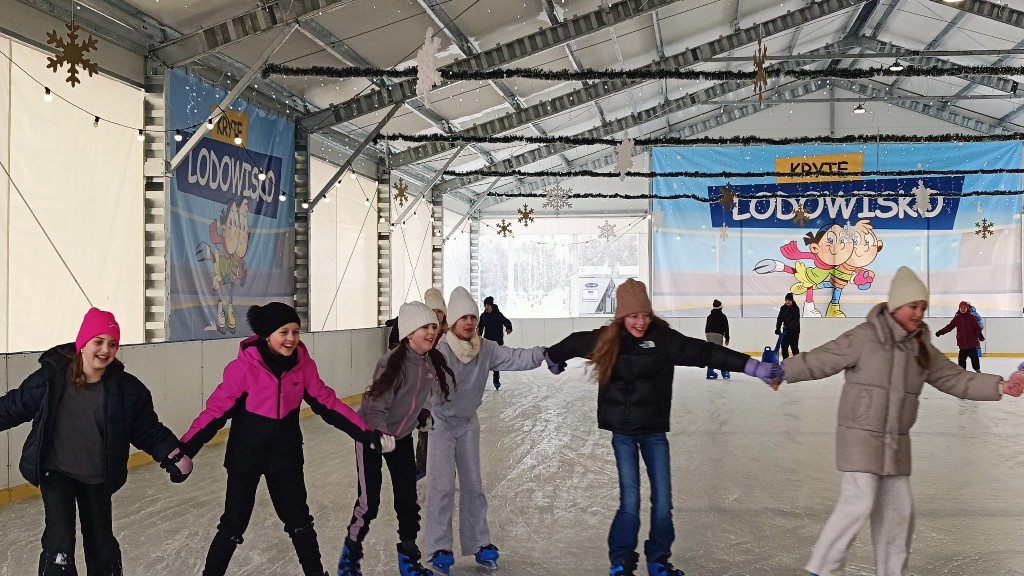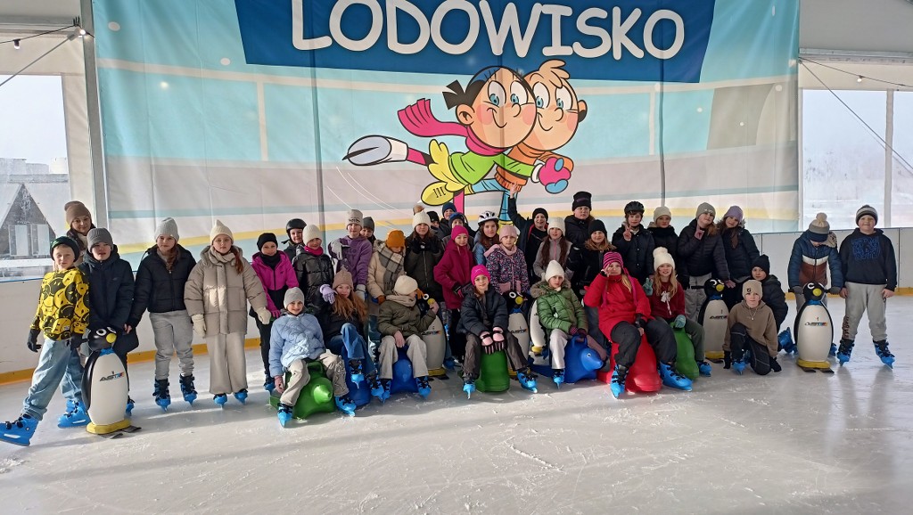 10 lutego 2026r. klasy czwarte wraz z opiekunami udały się na lodowisko MOSiR w Mielcu. Część uczestników stawiała odważnie pierwsze kroki na lodzie, i mimo zdarzających sie upadków, z zapałem i uśmiechem na twarzach szlifowali swoje umiejętności łyżwiarskie. Uczniowie, którzy już opanowali jazdę na łyżwach pomagali pozostałym, zajęcia na lodowisku stały okazją do integracji i wspólnej zabawy.